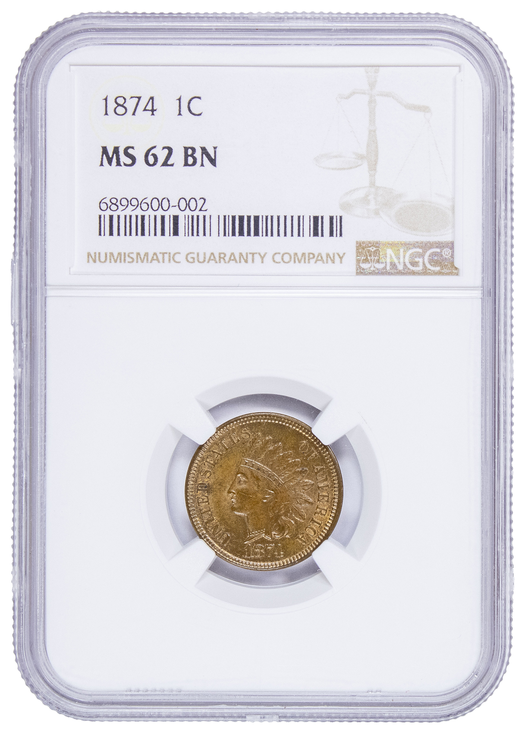 NGC MS-62 BN 1874 Indian Cent