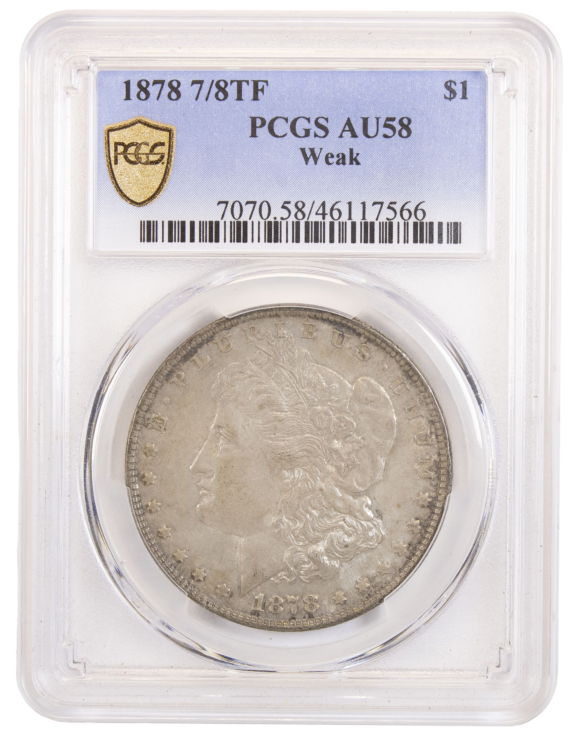 PCGS AU-58 1878 7/8TF Morgan Dollar