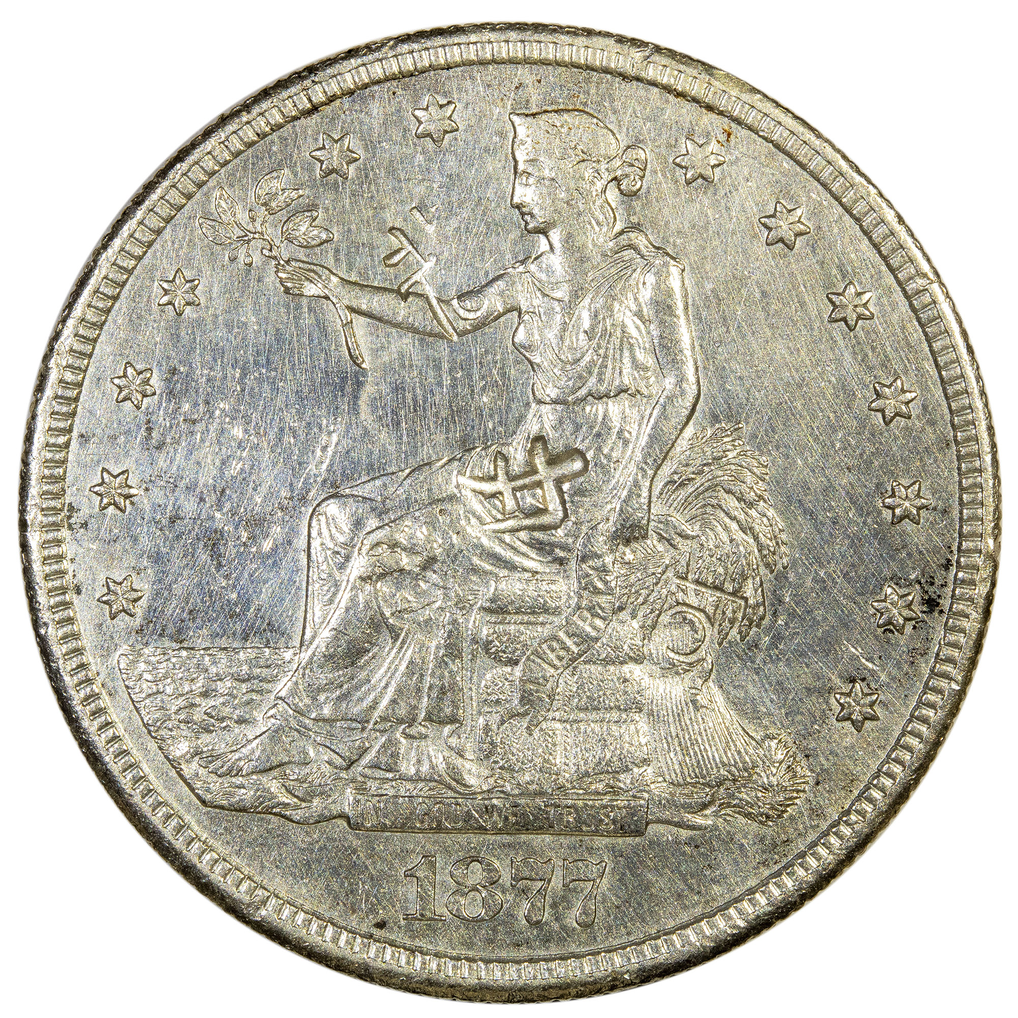Unc Details Chop Marked 1877-S Trade Dollar