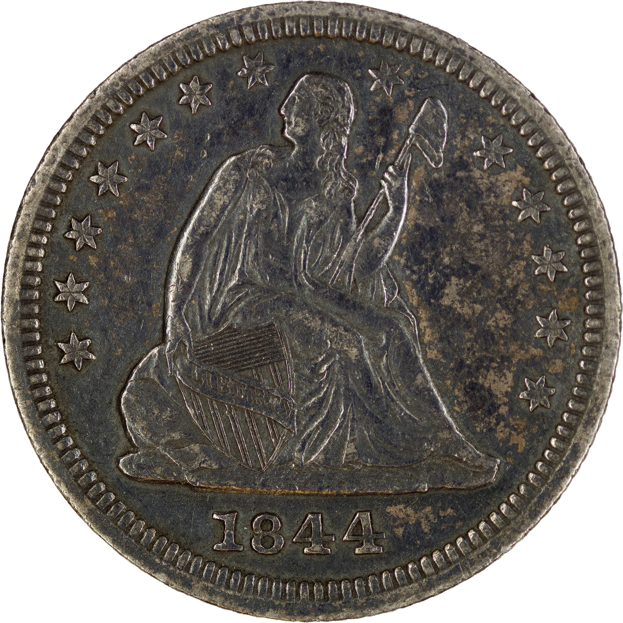 Toned AU-50 1844 Quarter