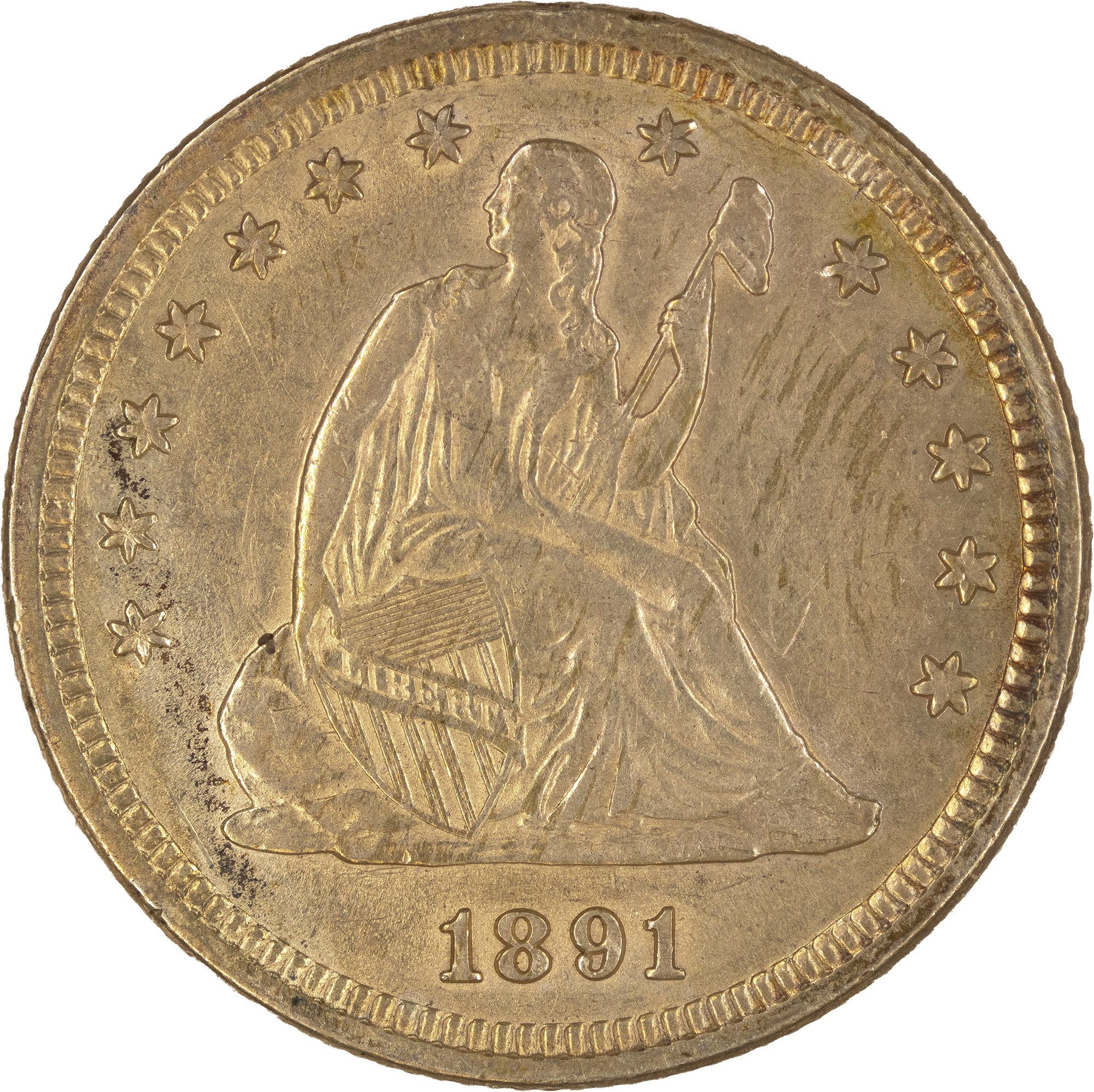 AU-50+ 1891 Seated Quarter