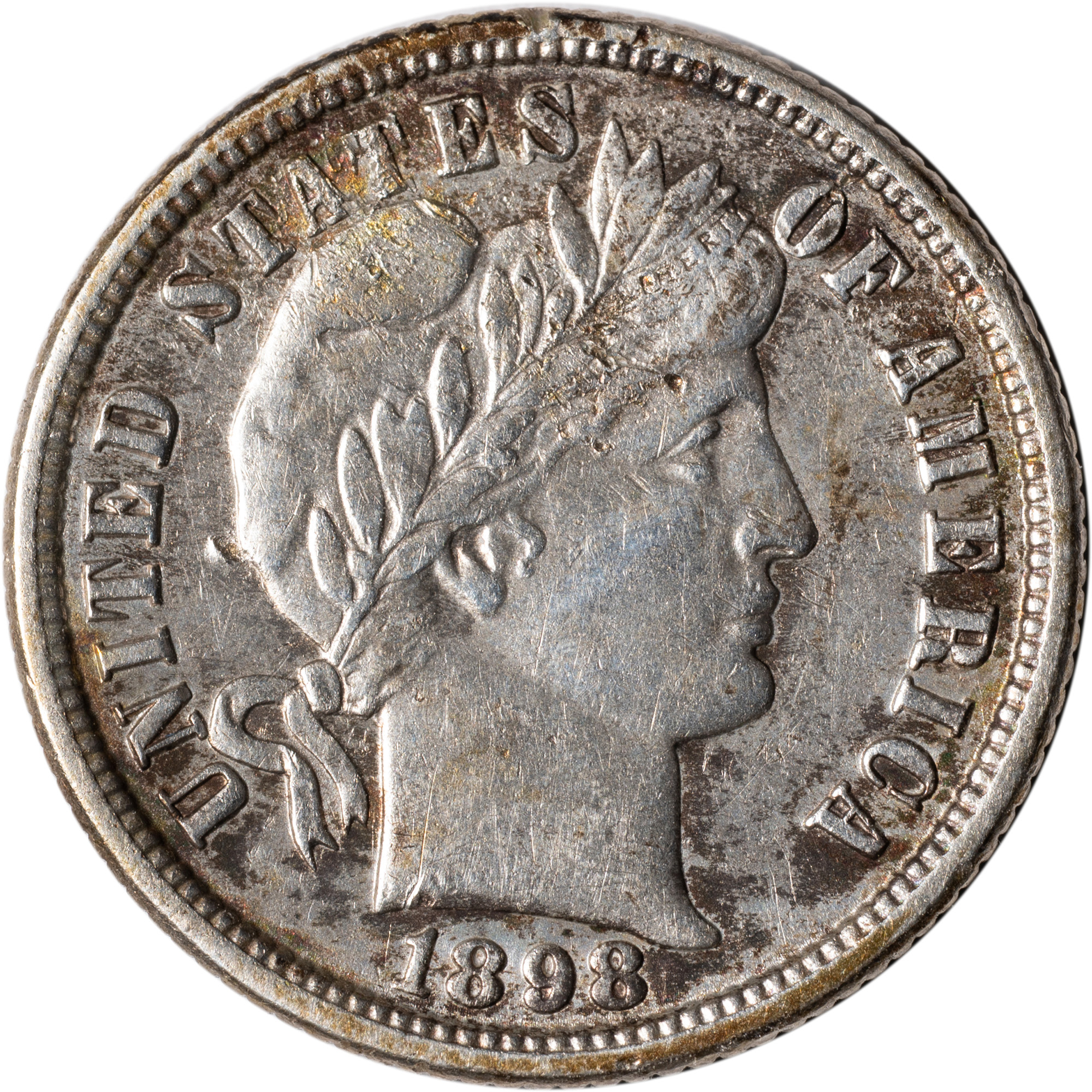 AU-50 Details 1898-O Barber Dime