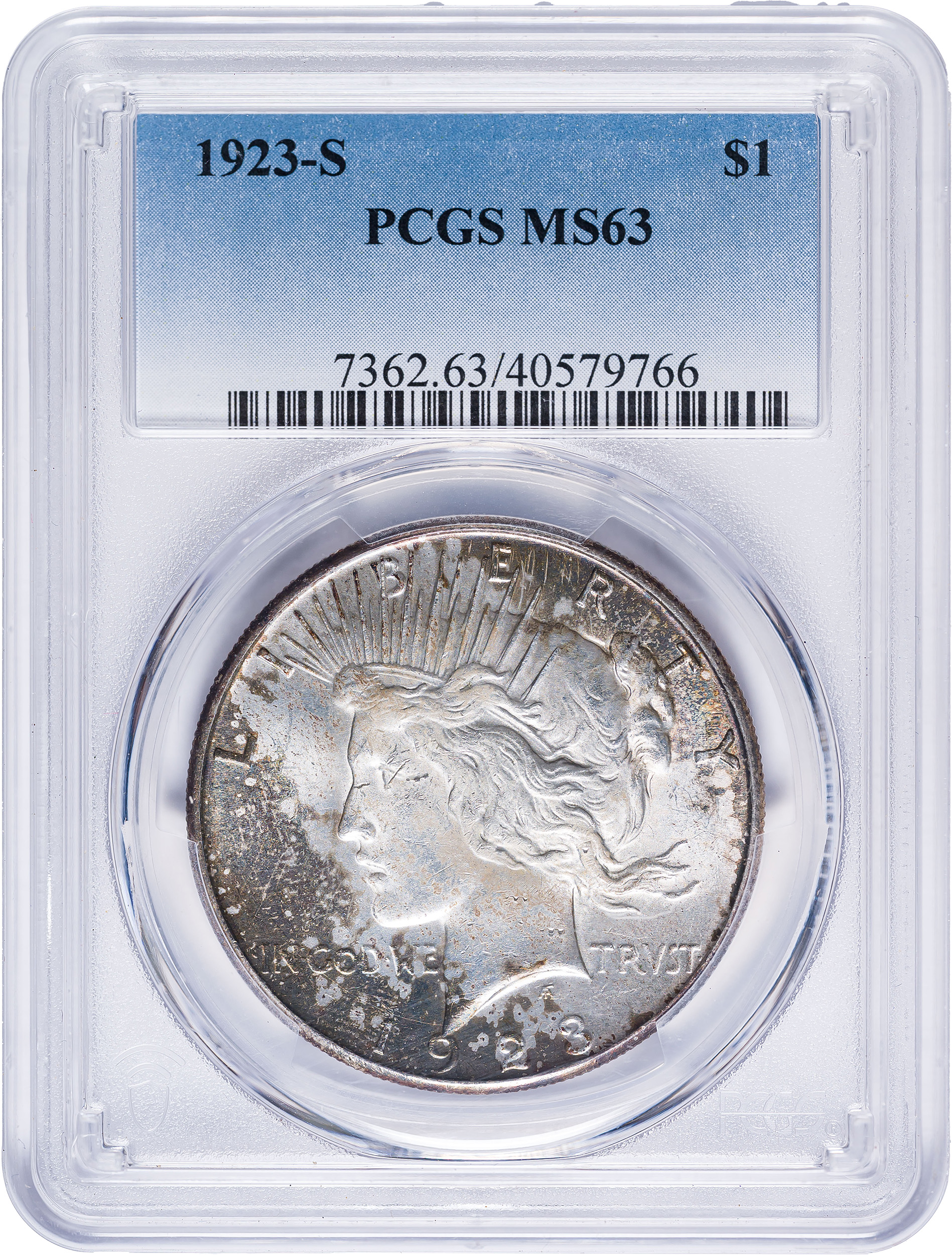 PCGS MS-63 Toned 1923-S Peace Dollar