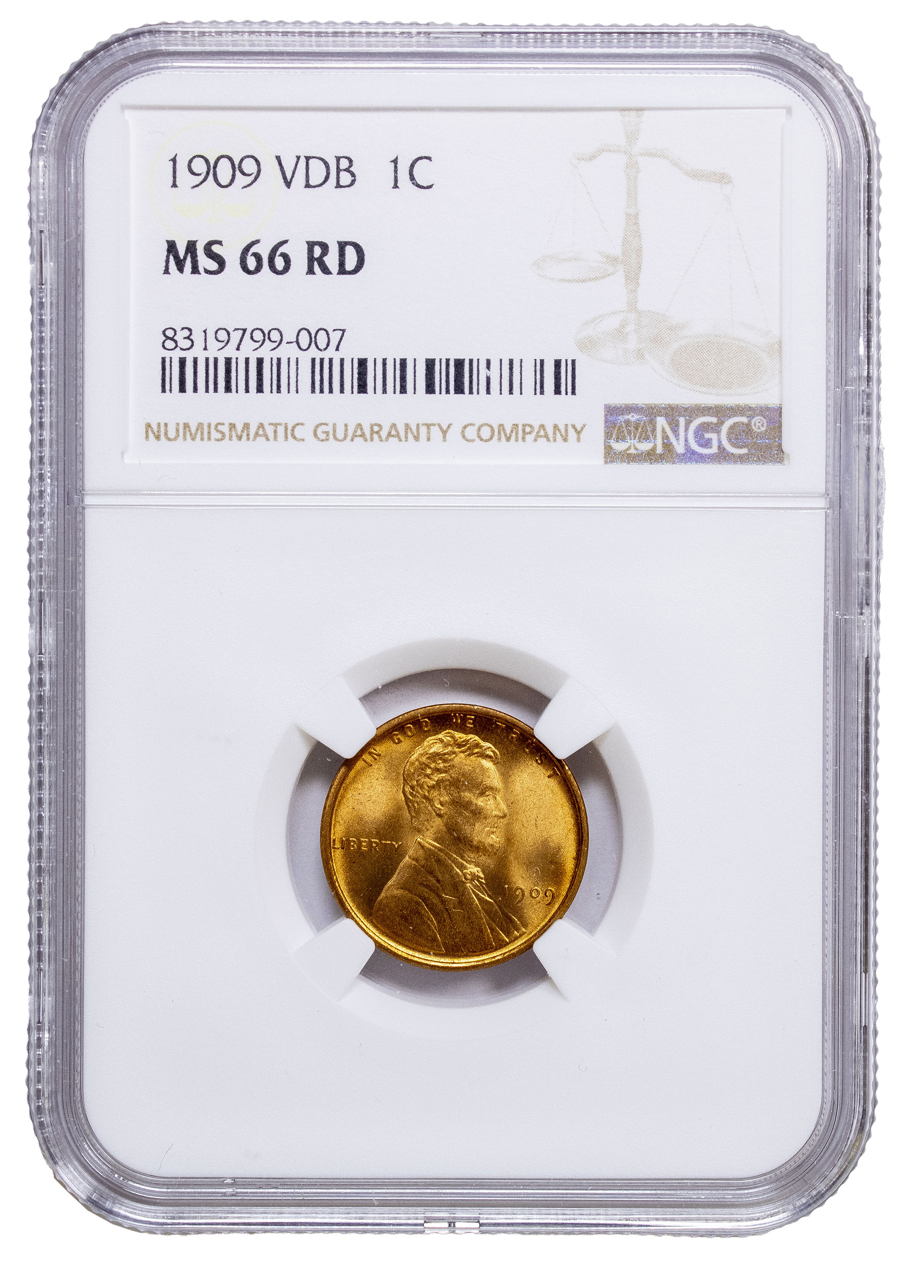 NGC MS-66 RD 1909 V.D.B. Cent
