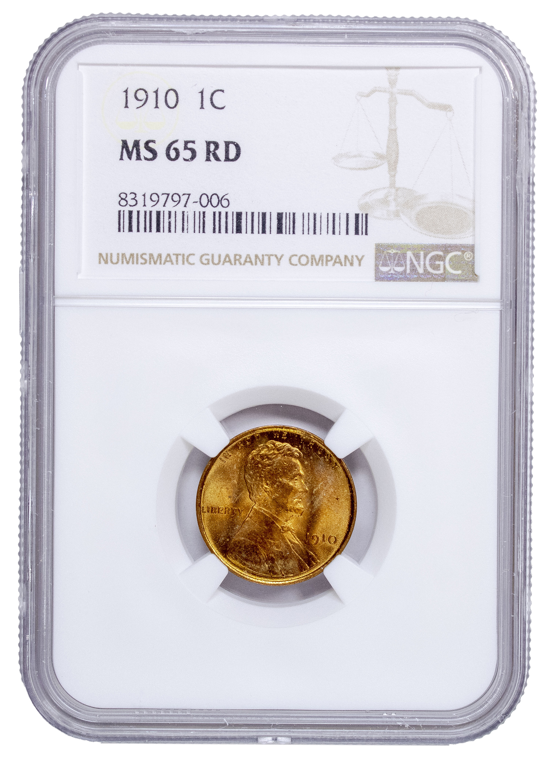 NGC MS-65 RD 1910 Lincoln Cent
