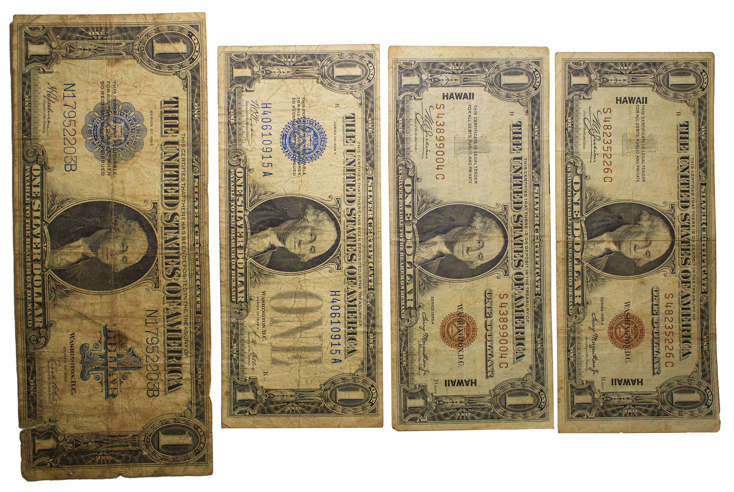 Quartet of Low-Grade Silver Certificate $1 Notes