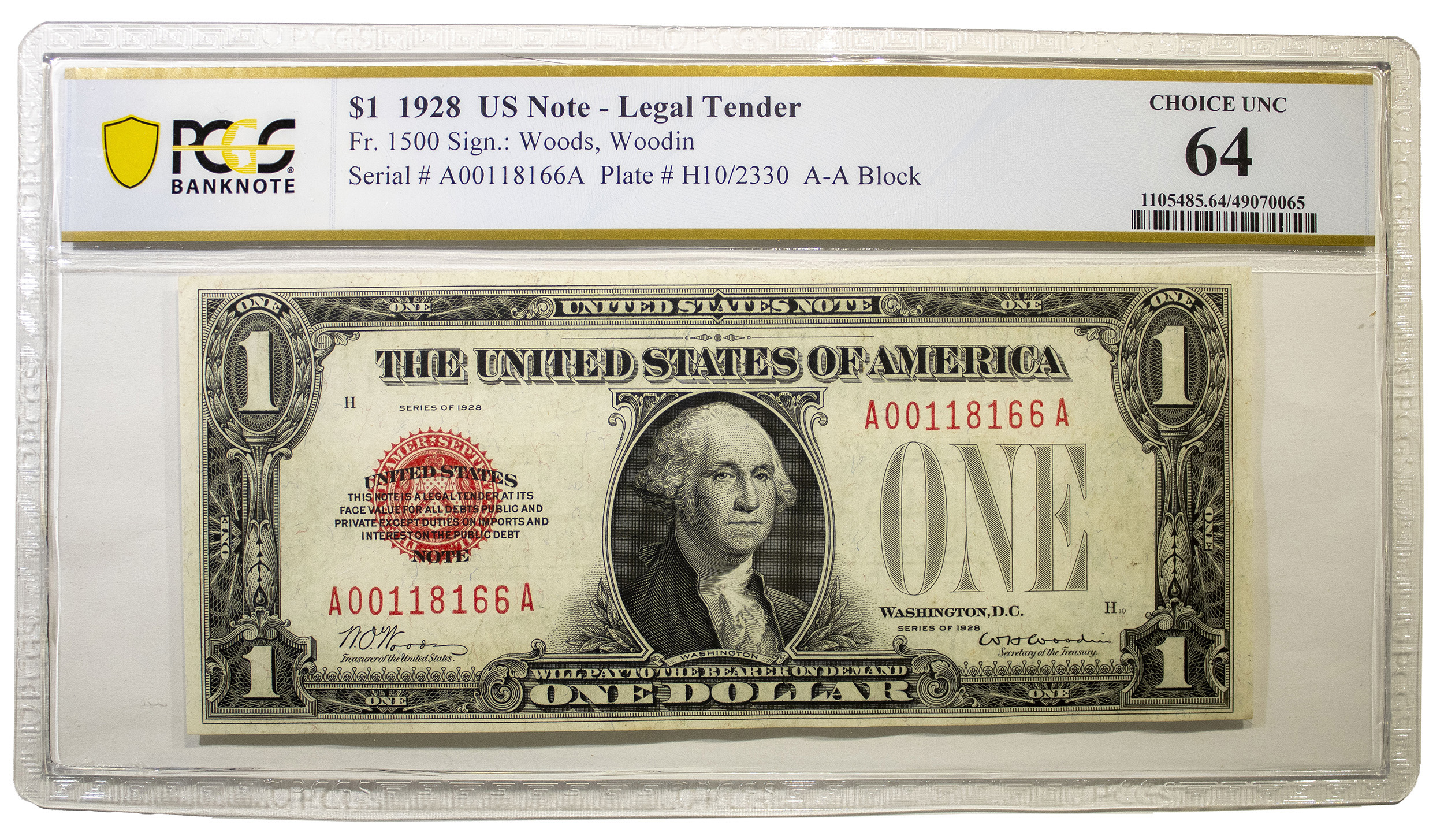 PCGS Choice Unc-64 Series 1928 Red Seal $1 Note