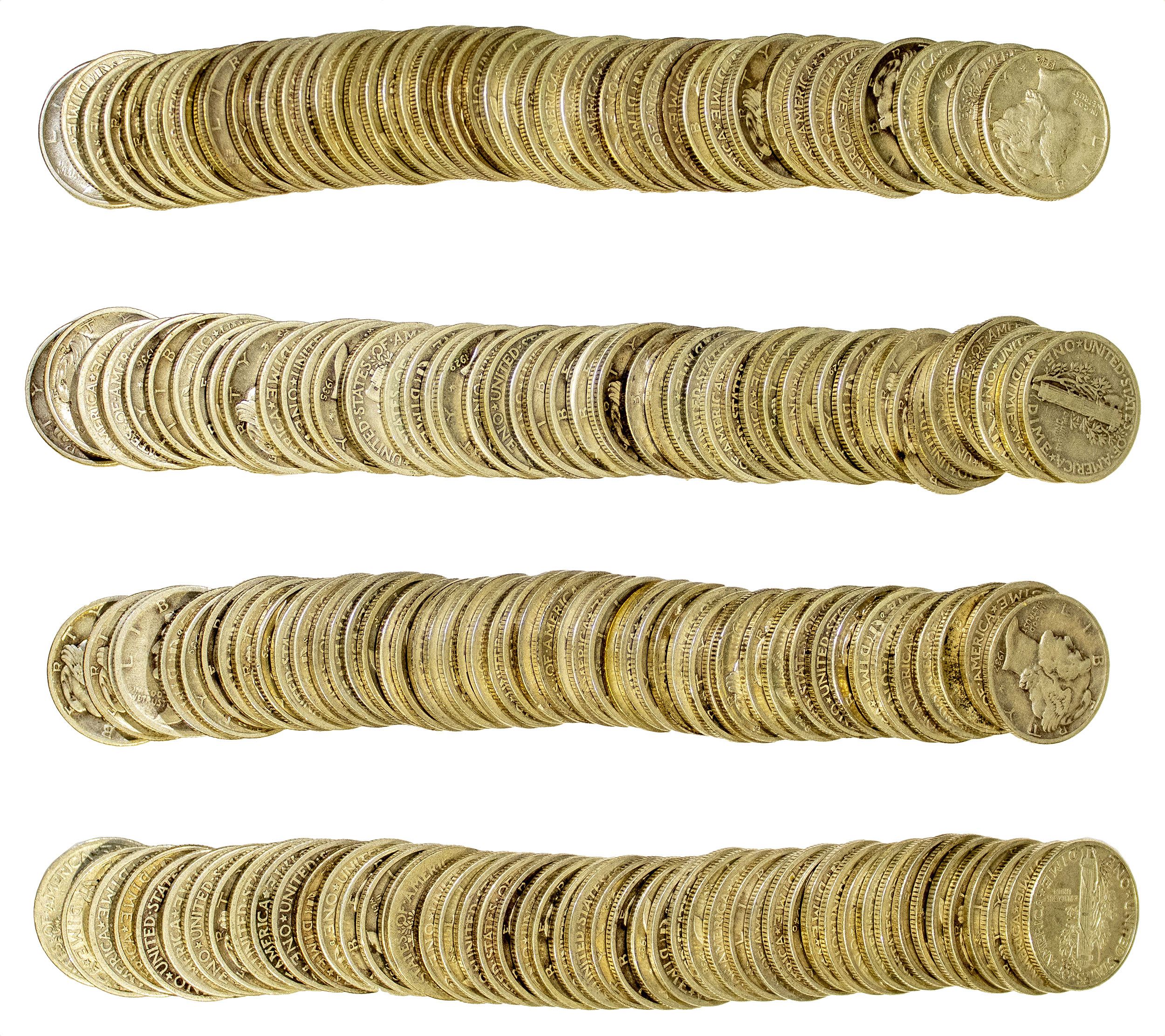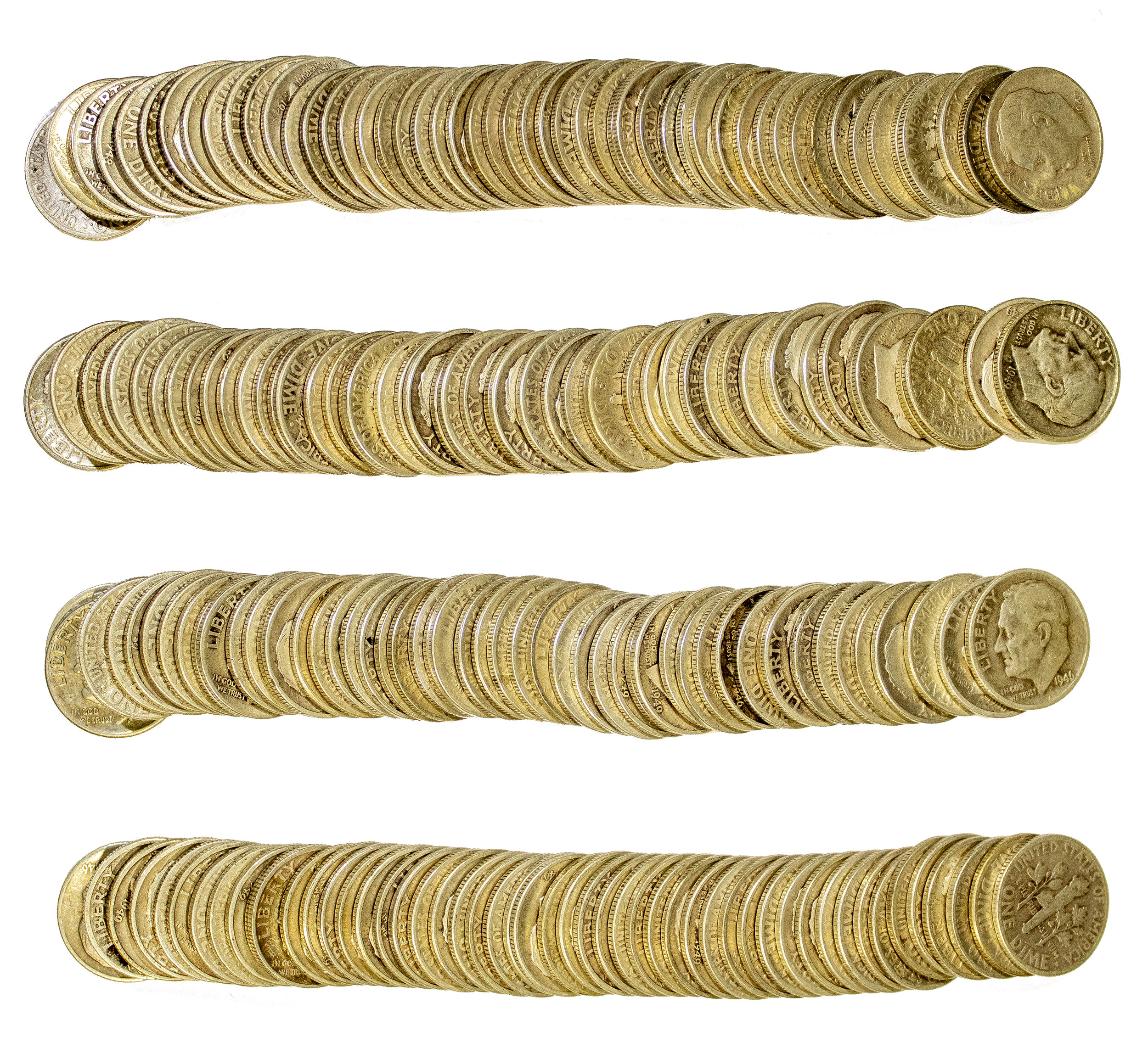 4 Rolls Of Circ 1940's Roosevelt Dimes