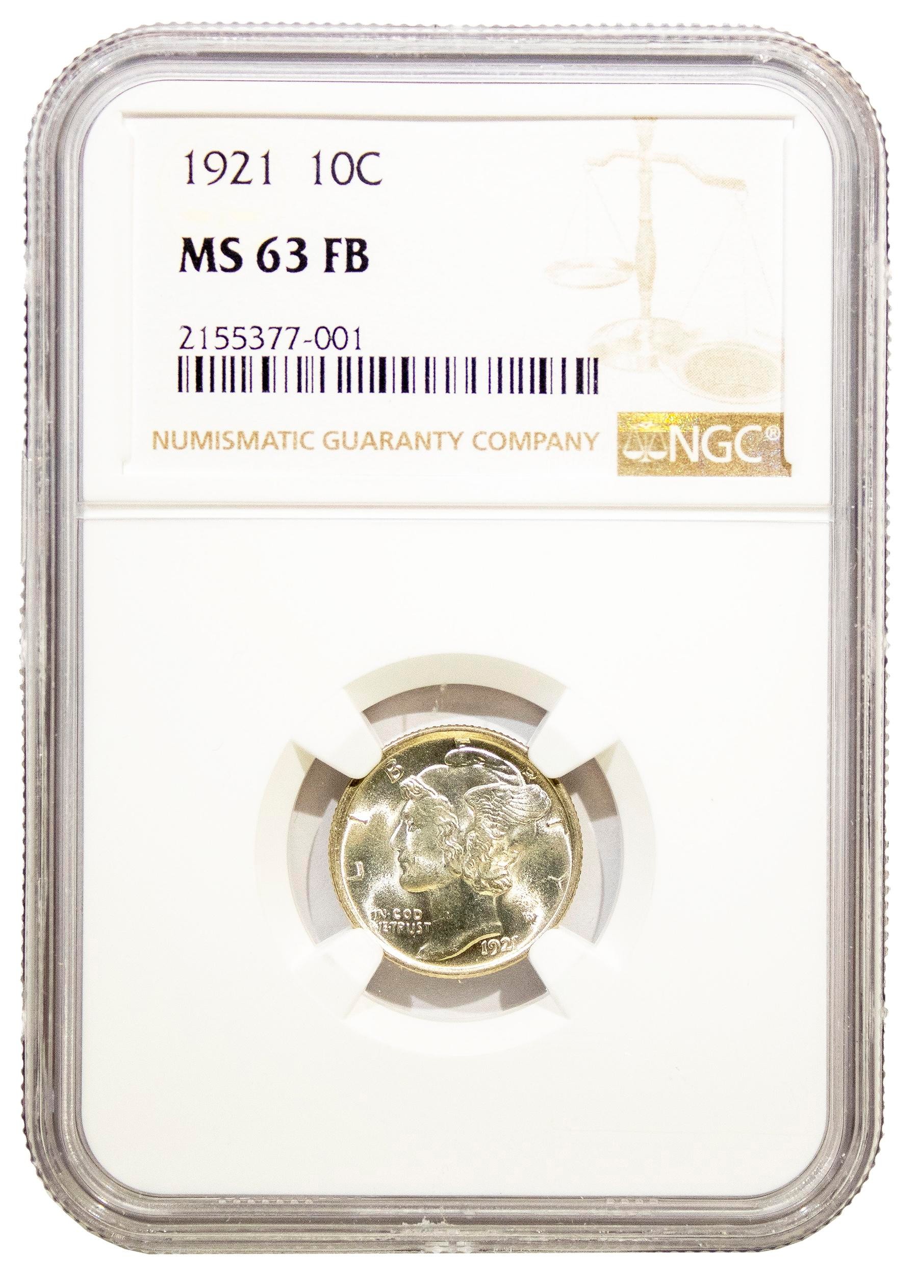NGC MS-63 FB 1921 Mercury Dime Rarity