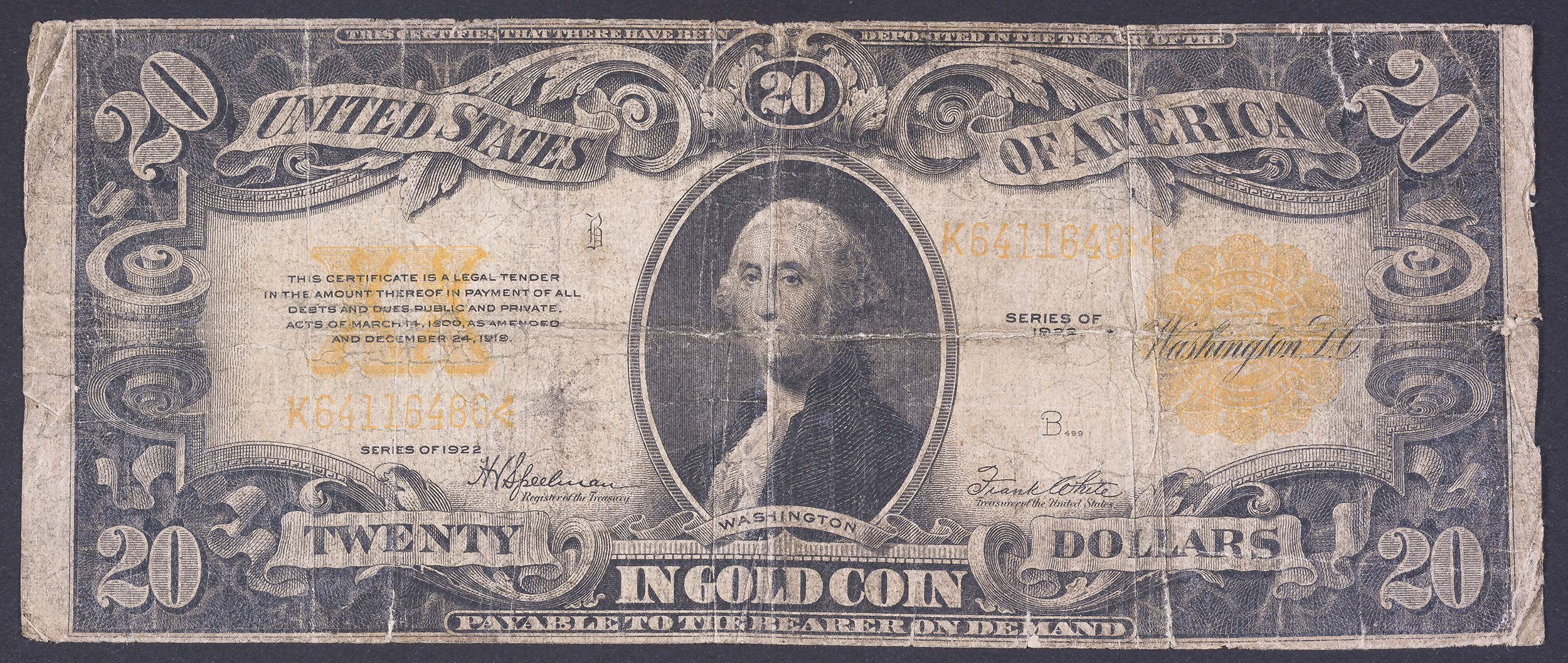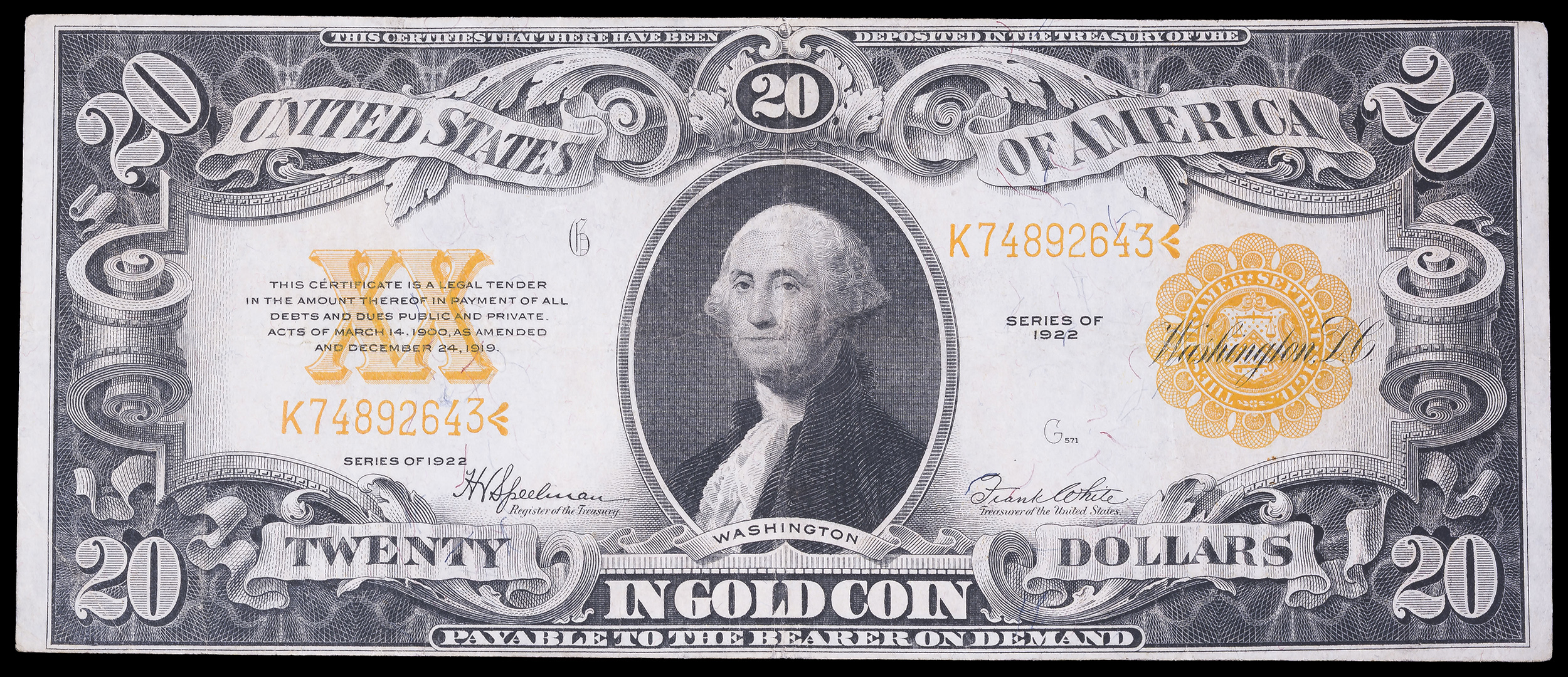 G-VG 1922 $20 Gold Note
