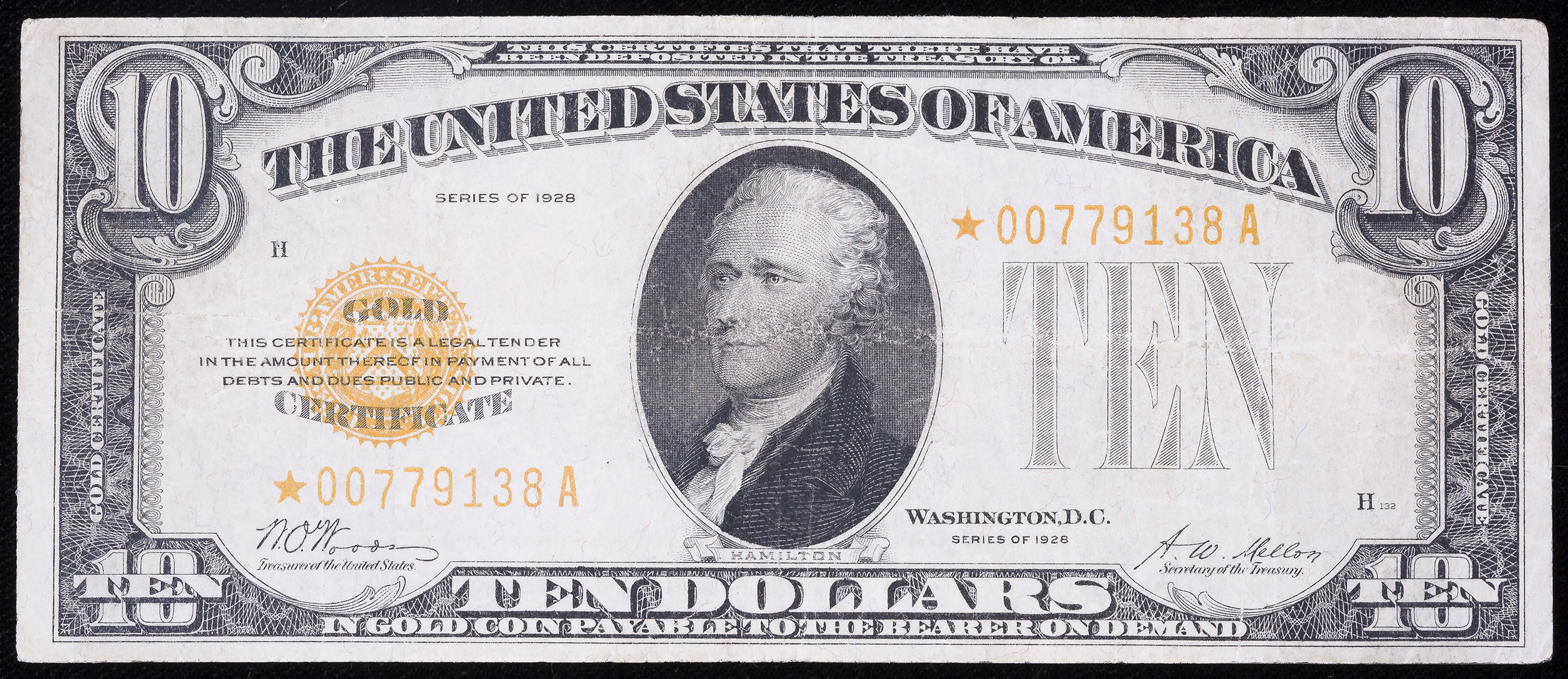 VF/EF 1928 $10 Star Gold Certificate