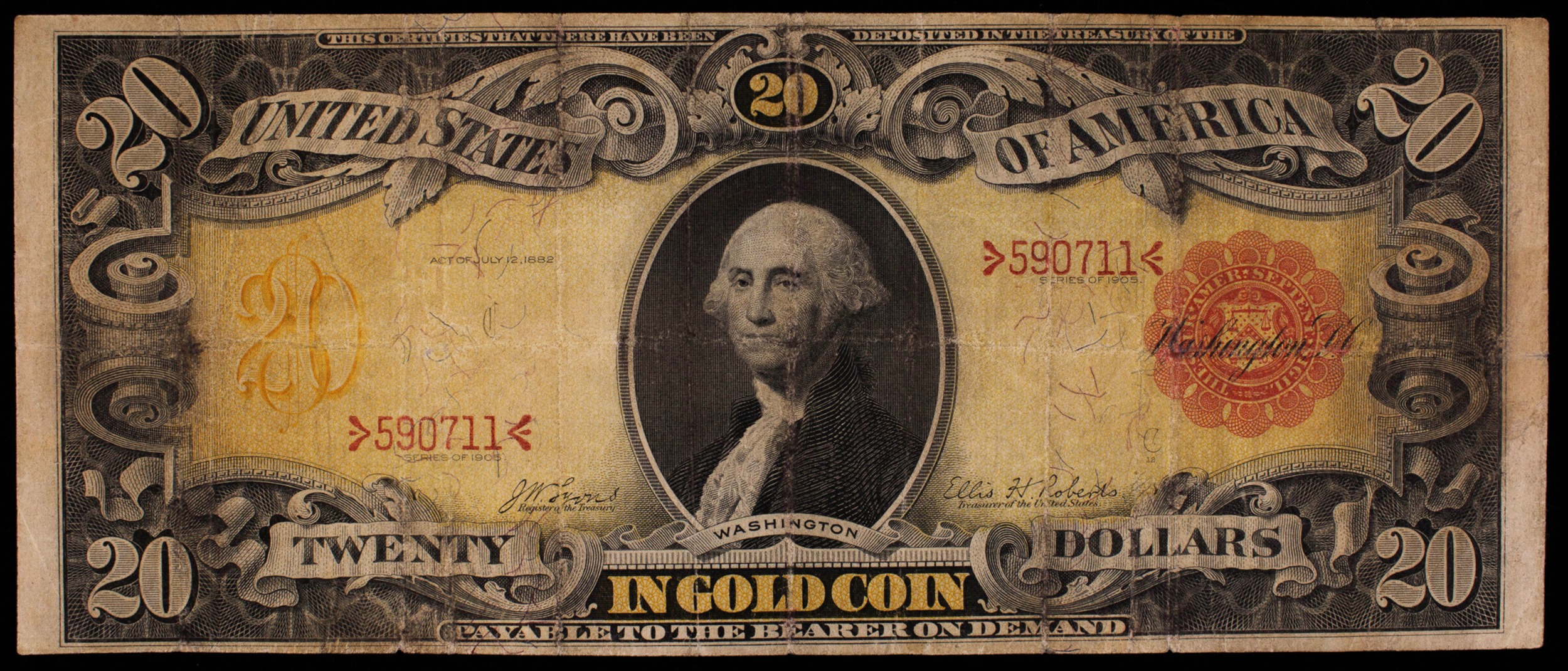 VF 1905 $20 Technicolor Gold Certificate