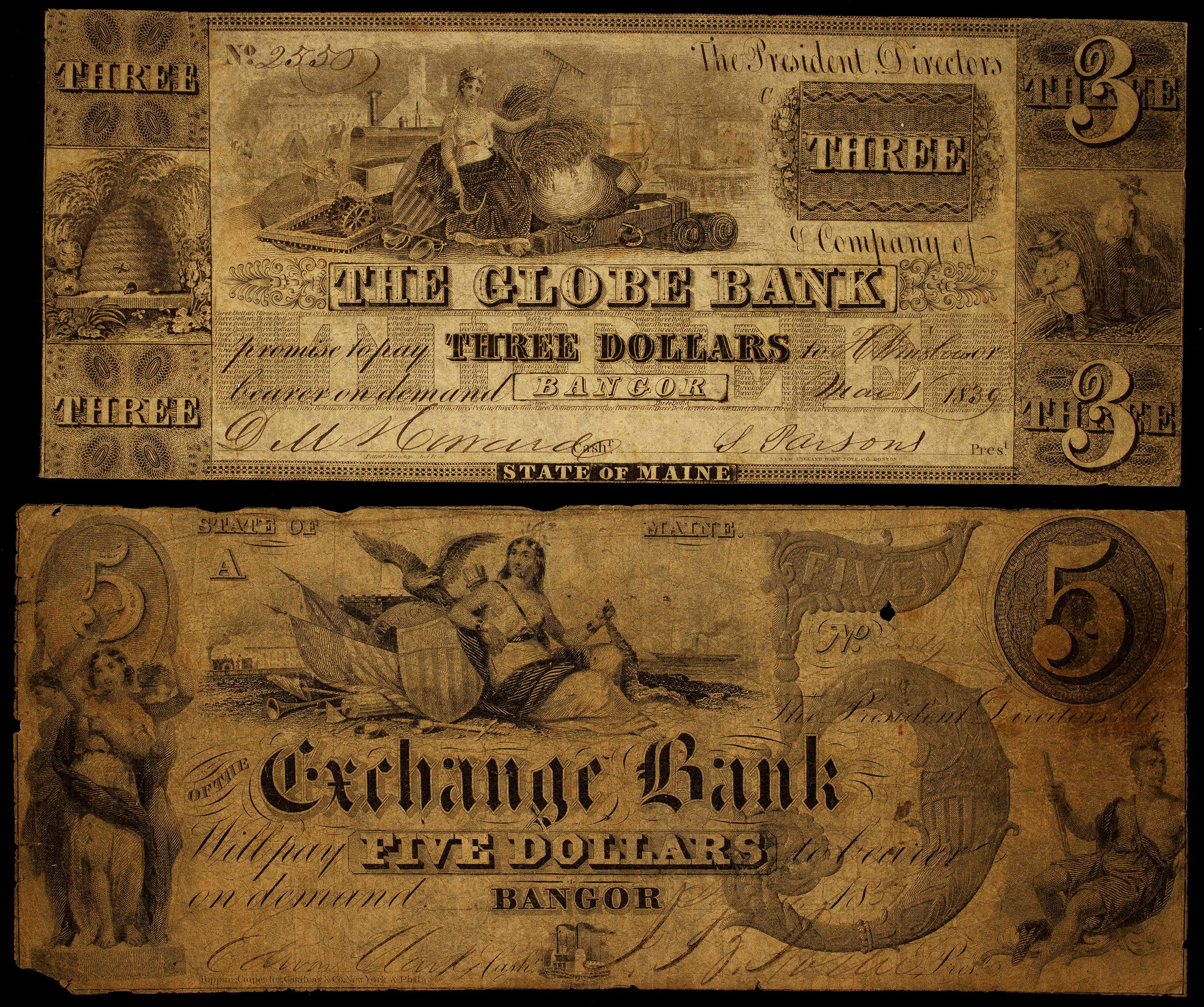 Maine. Pair of Obsolete Bangor Notes