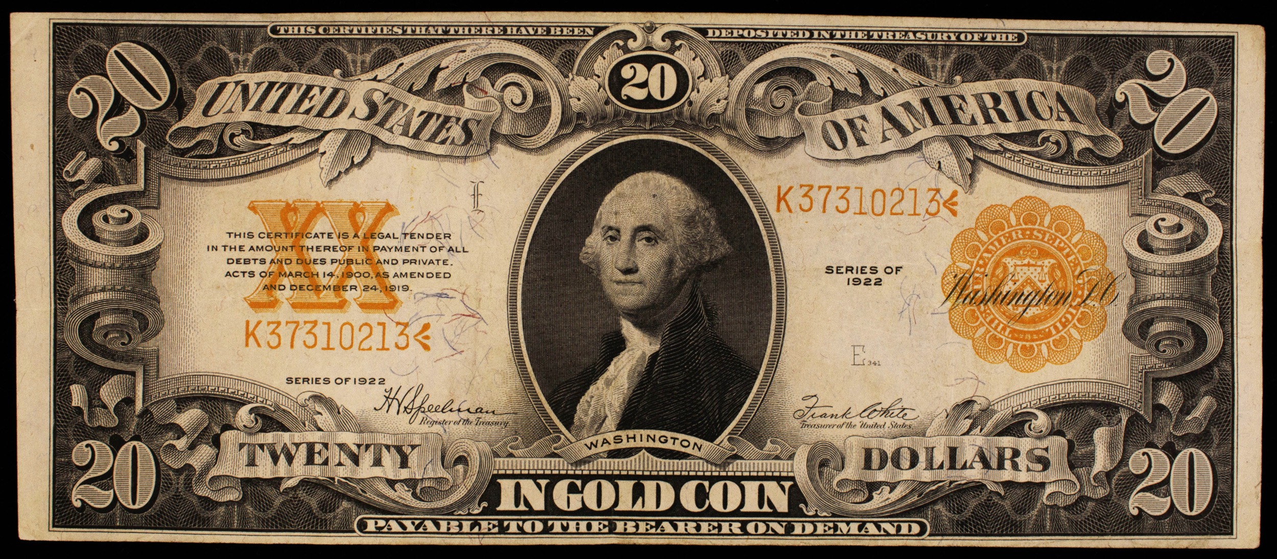 EF 1922 $20 Gold Certificate
