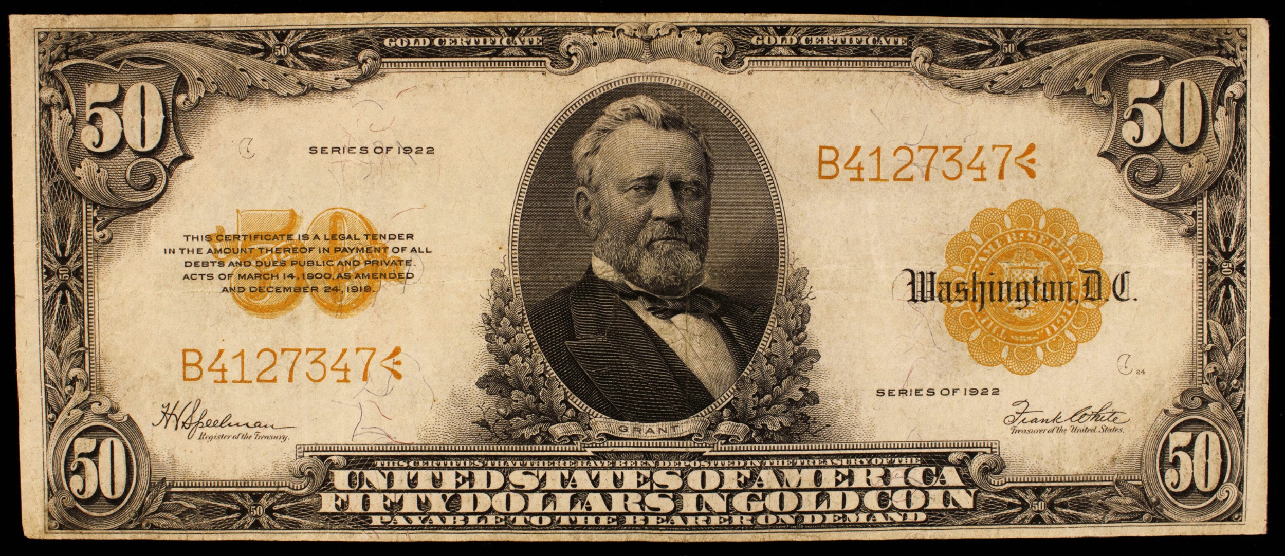 EF 1922 $50 Gold Certificate