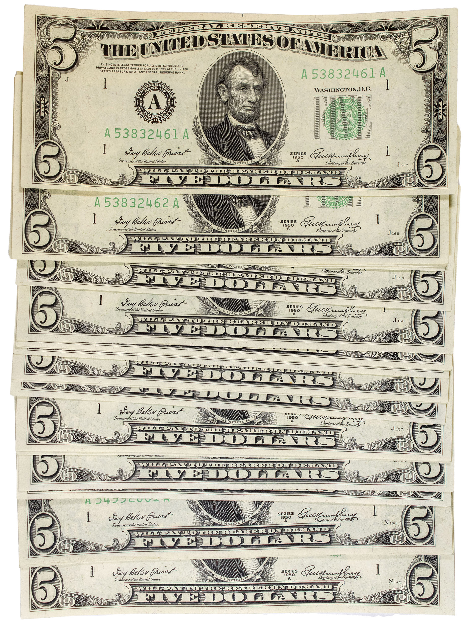 22 Pcs CU 1950-A $5 FRN's