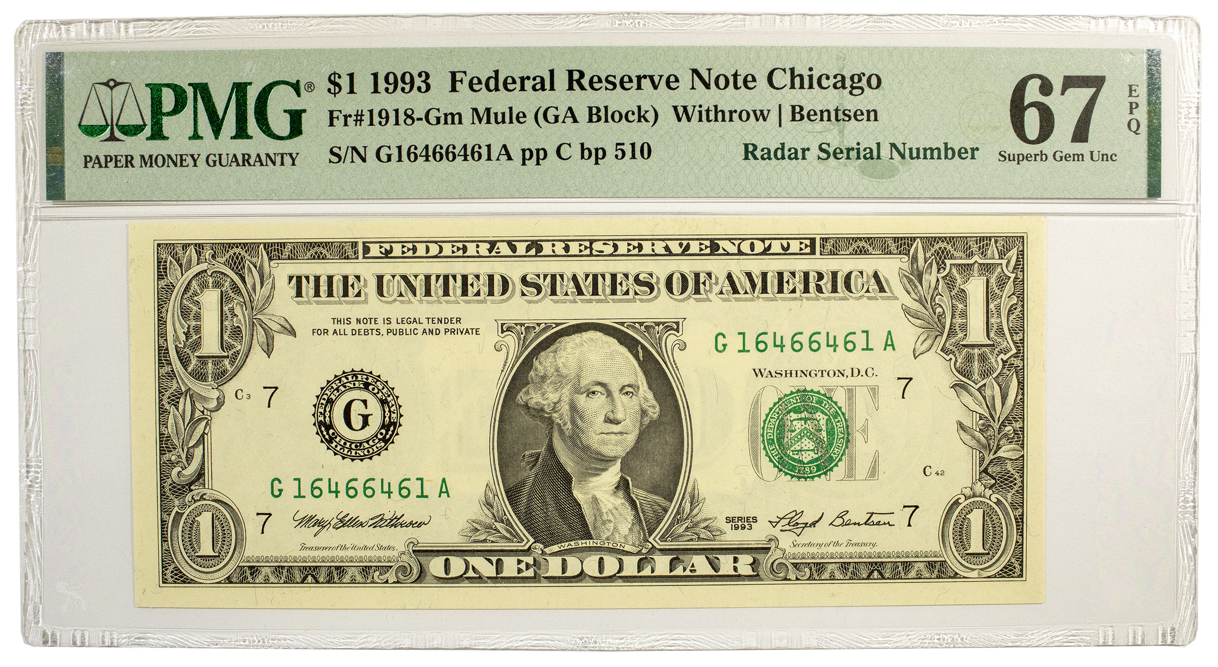PMG Gem-67 1993 Radar Serial Number $1 Note