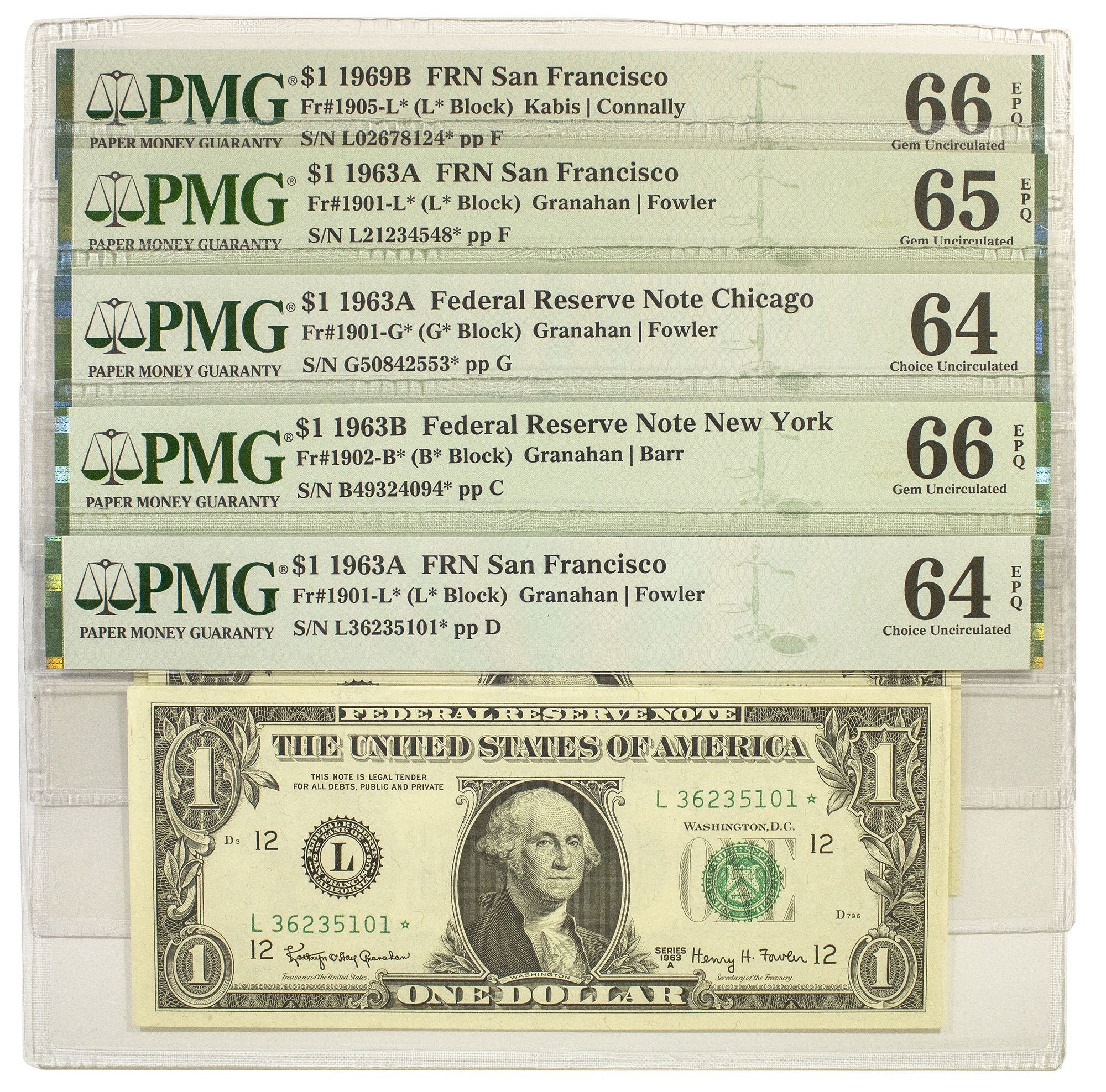5 PCS PCGS Repeater Serial Number $1 FRN's