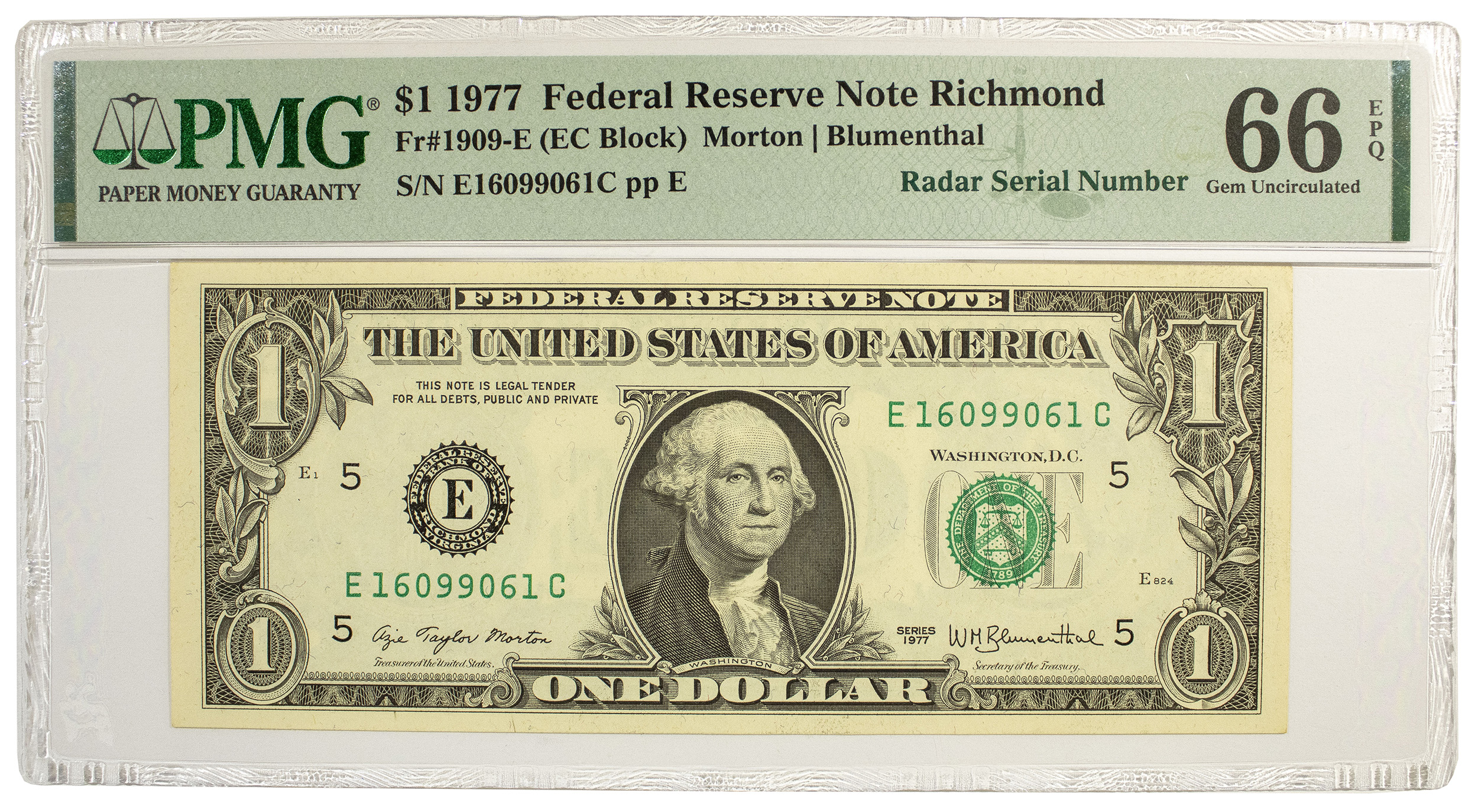 PMG Gem-66 1977 Radar Serial Number $1 Note