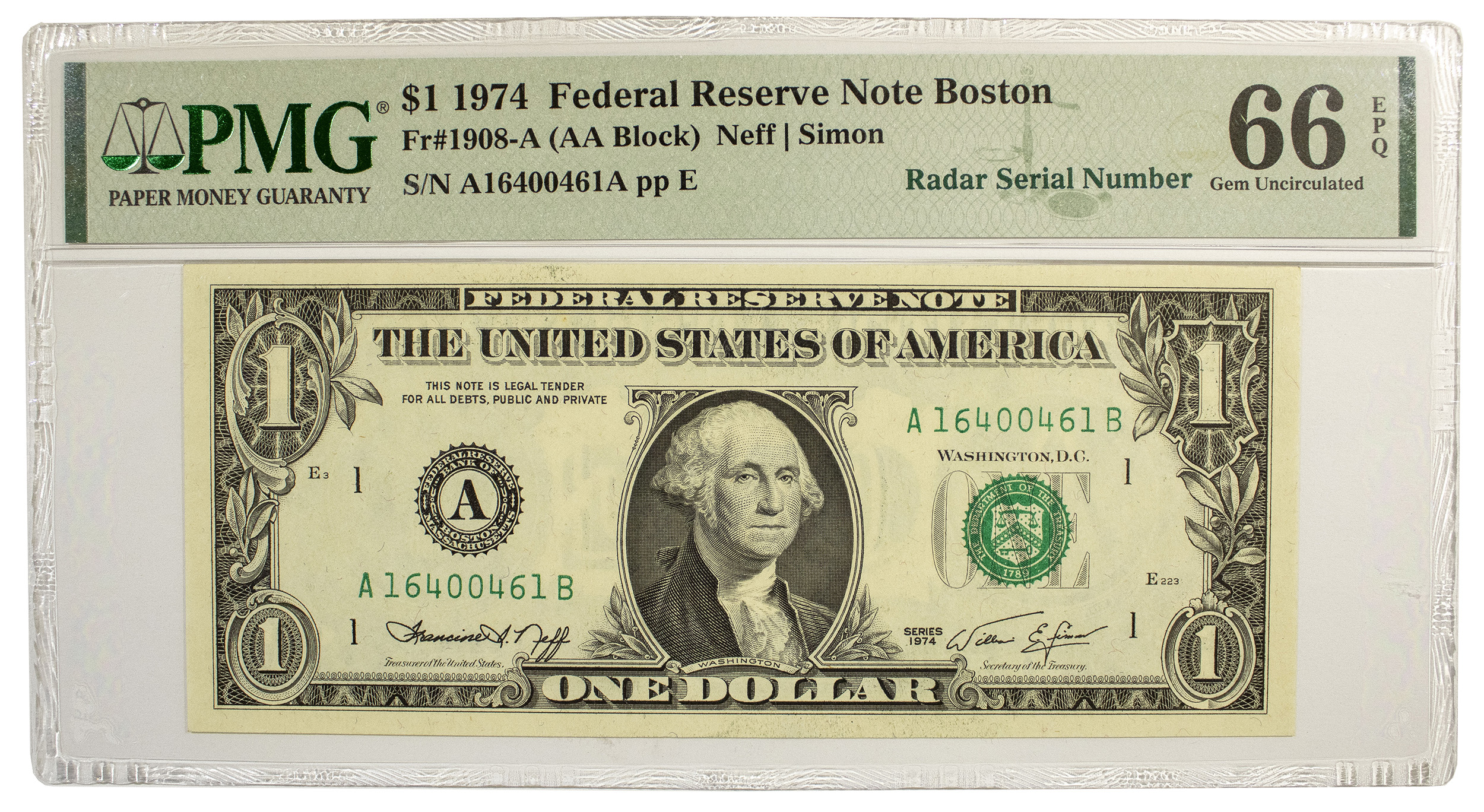PMG Gem-66 1974 Radar Serial Number $1 Note