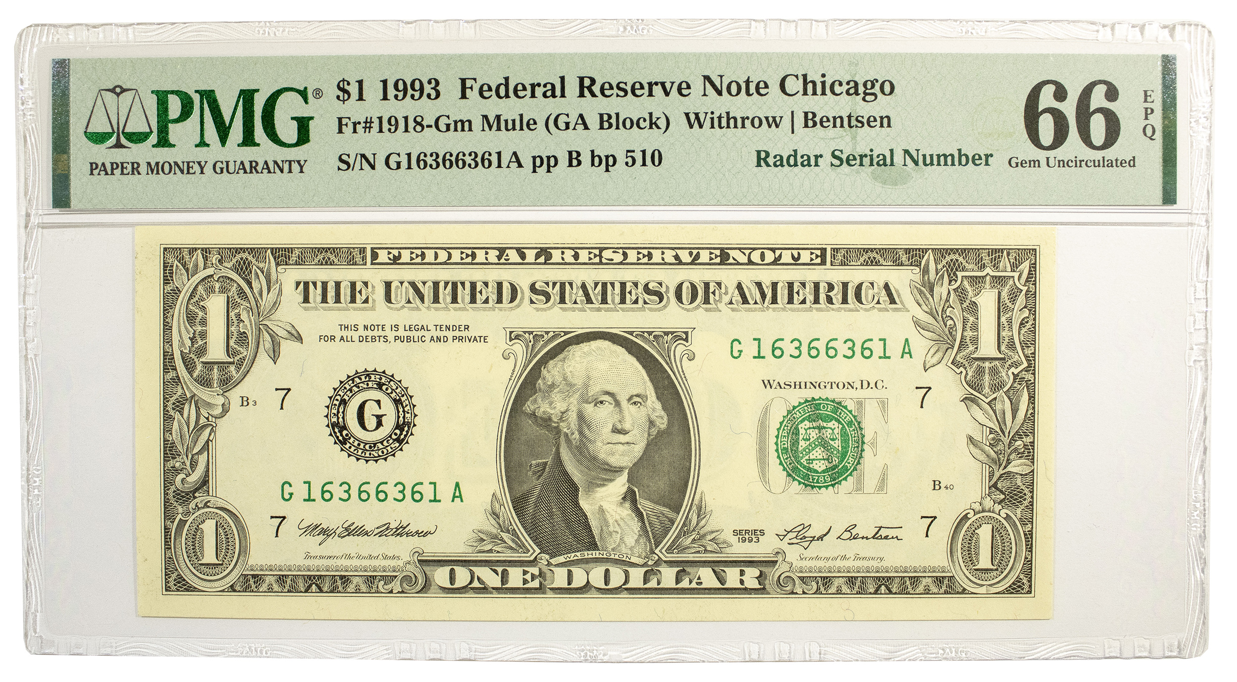 PMG Gem-66 1993 Radar Serial Number $1 Note