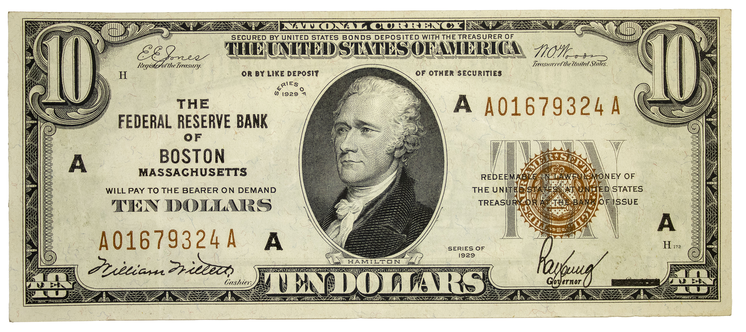 Massachusetts. Boston. Choice EF Series 1929 $10