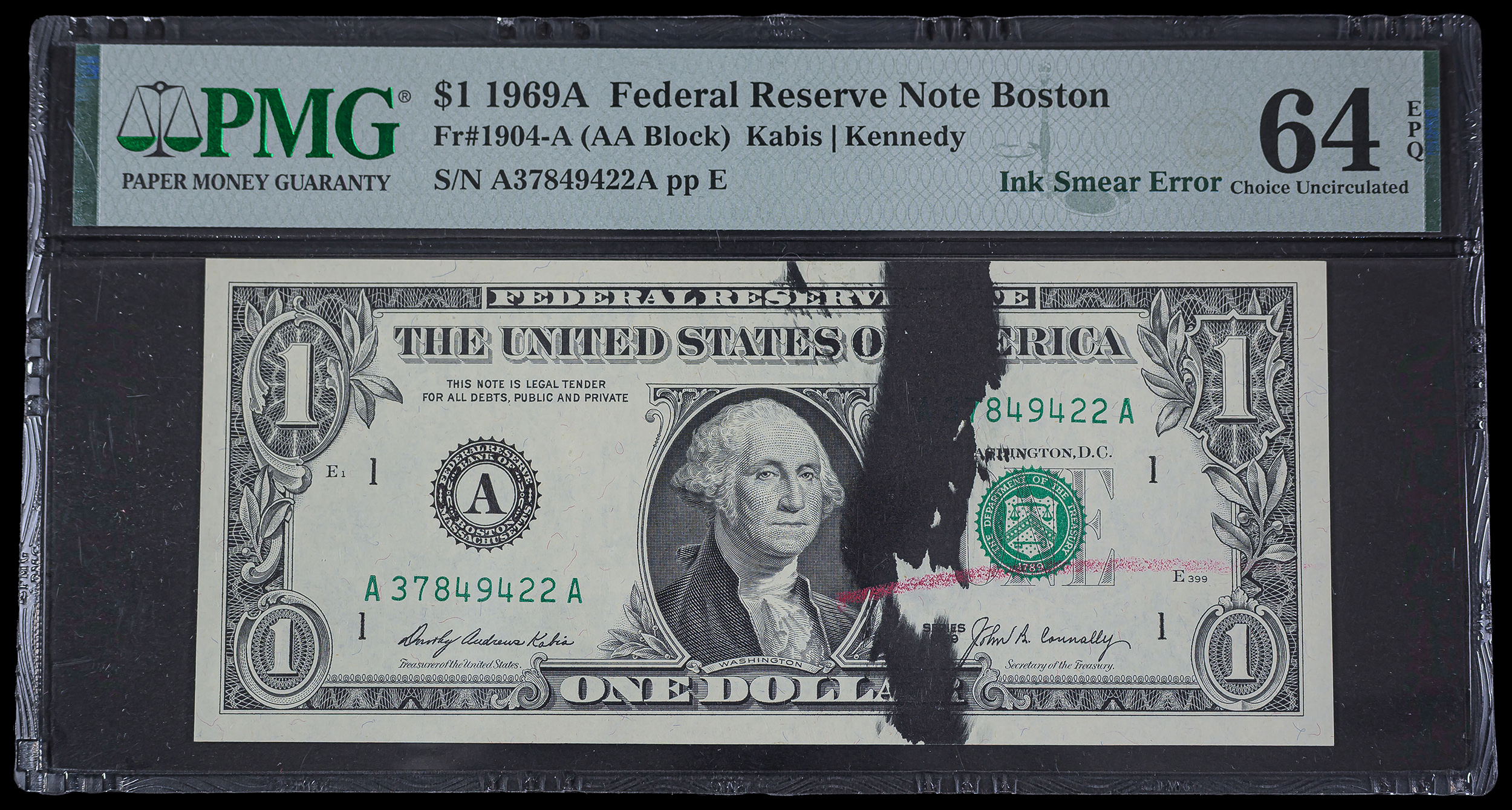 PMG-64 EPQ 1969-A $1 Error Note