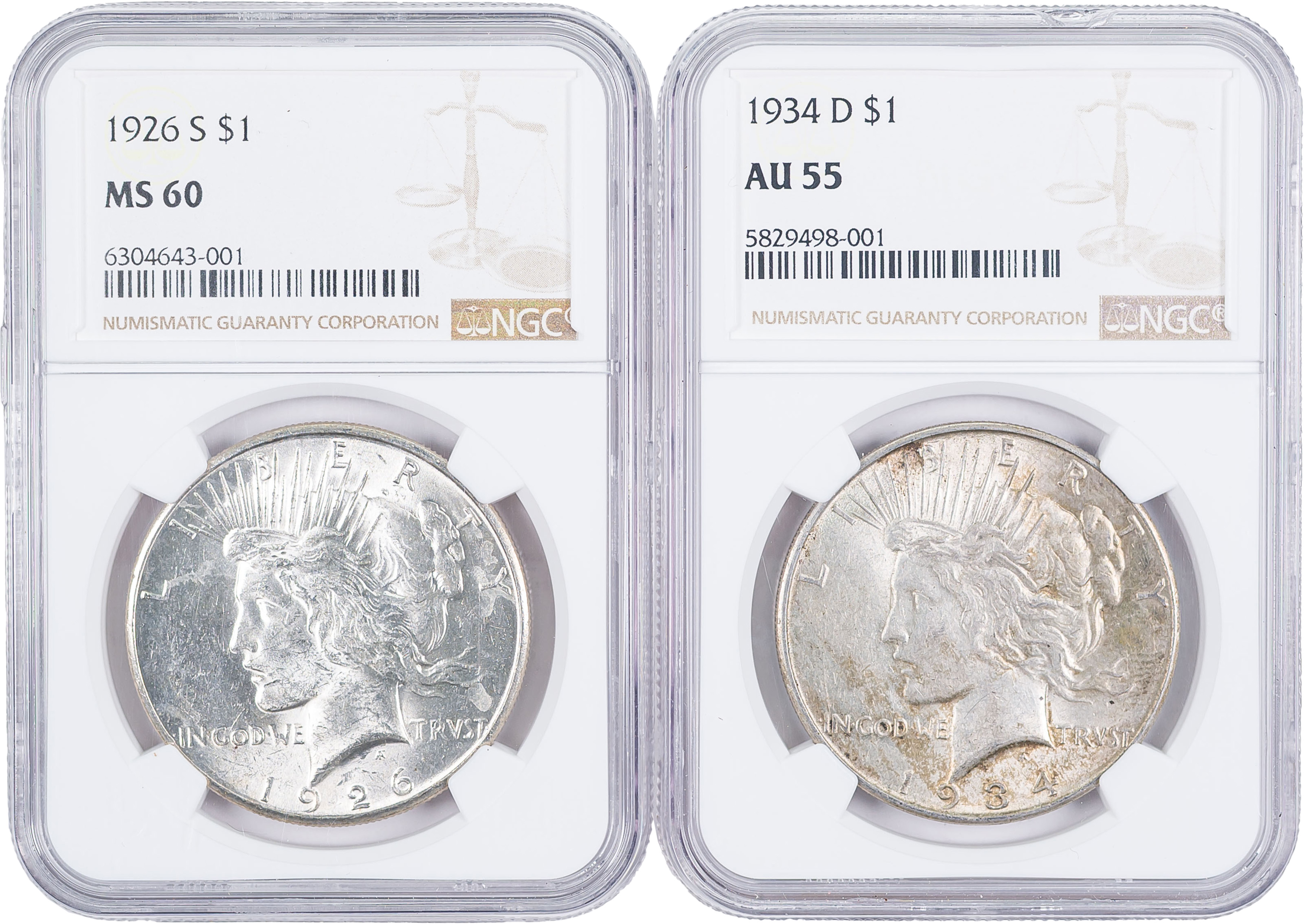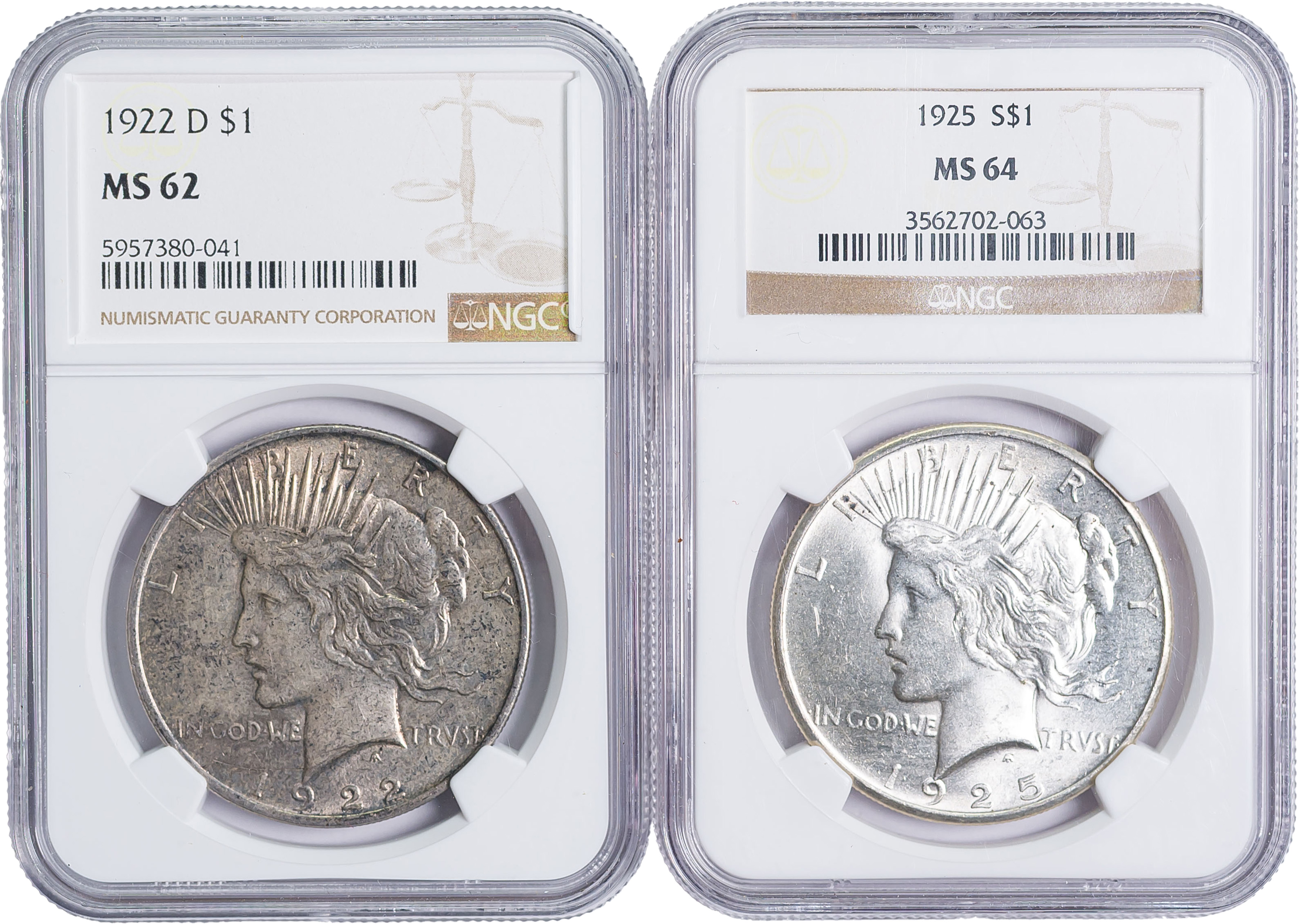 NGC Unc Peace Dollar Duo
