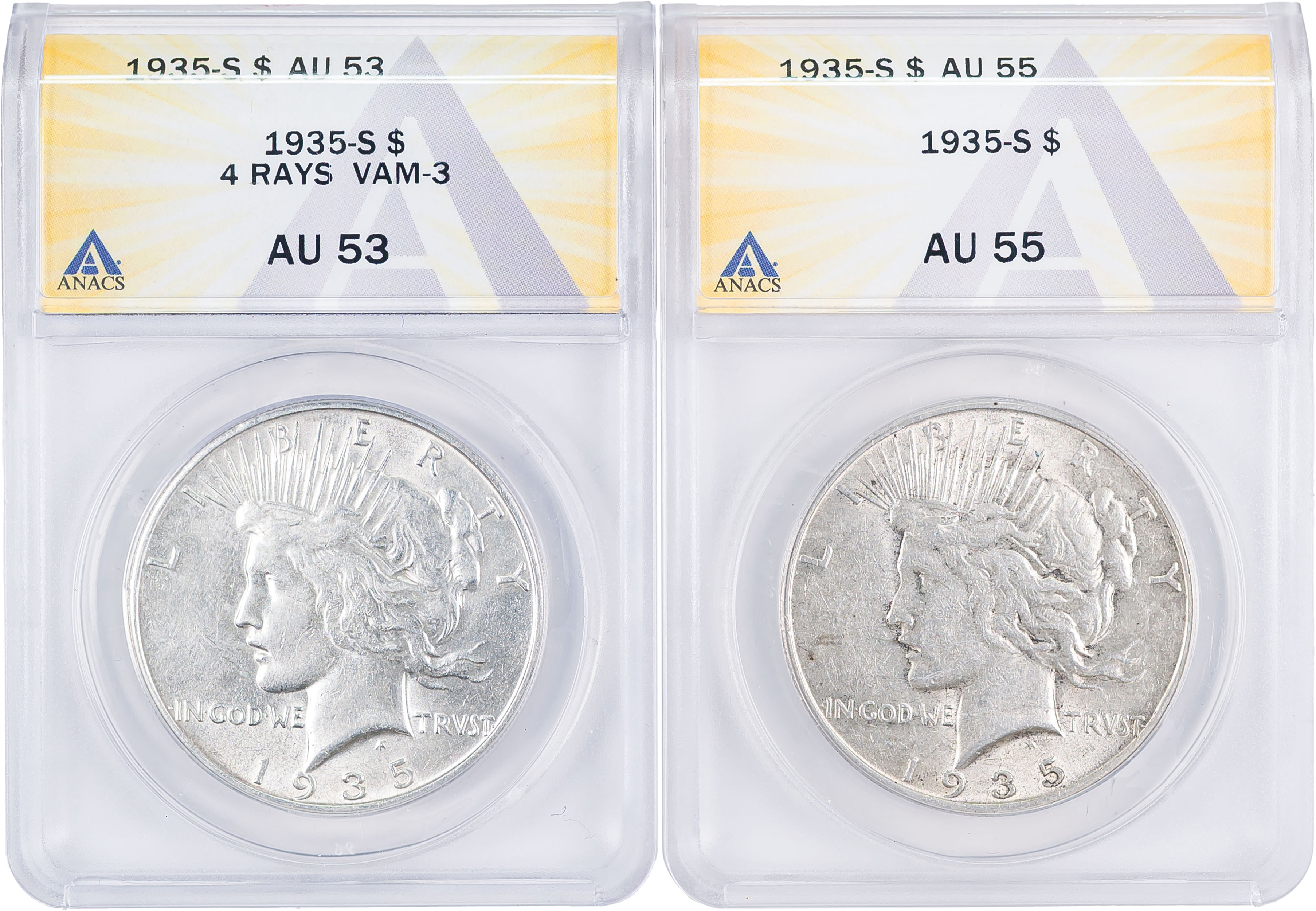 ANACS AU Pair 1935-S Peace Dollars