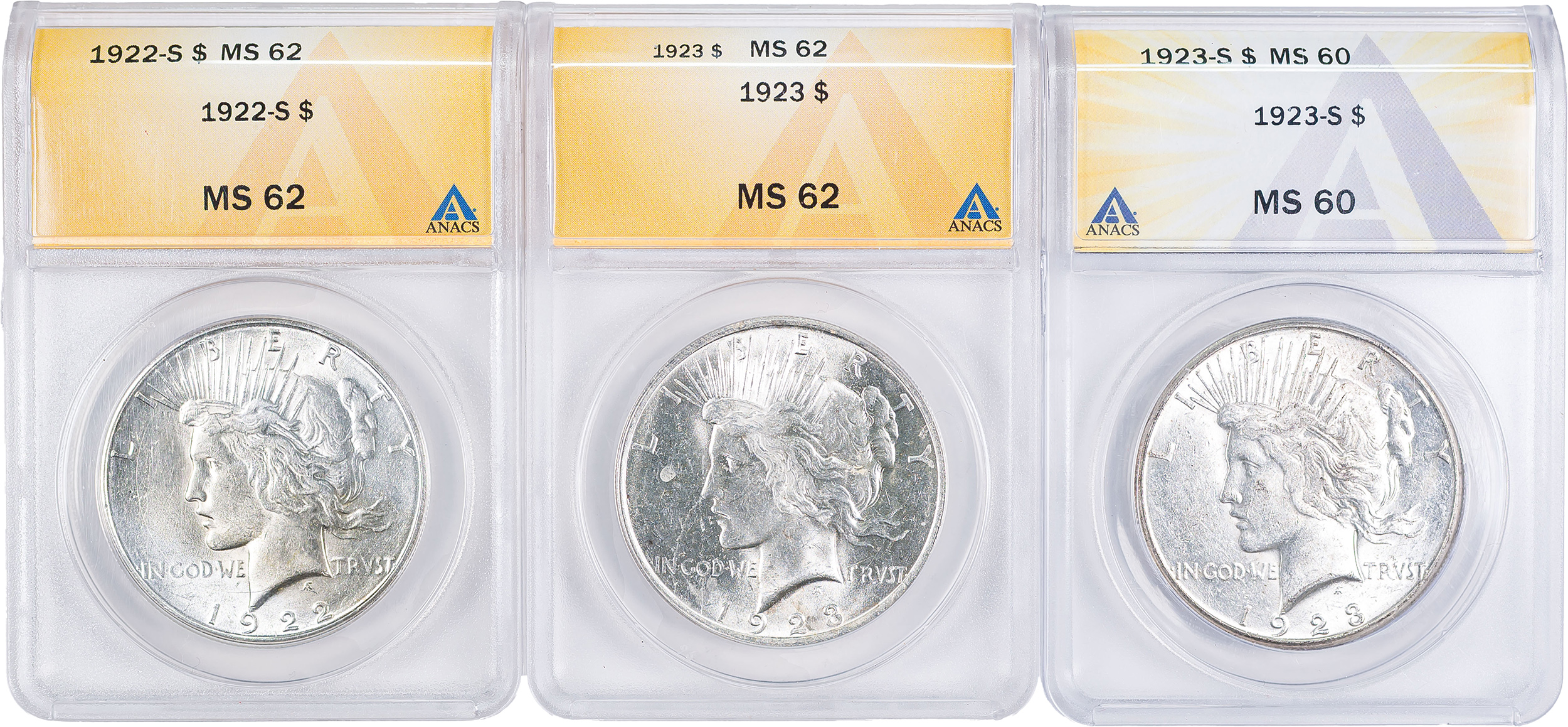 ANACS Unc Peace Dollar Trio