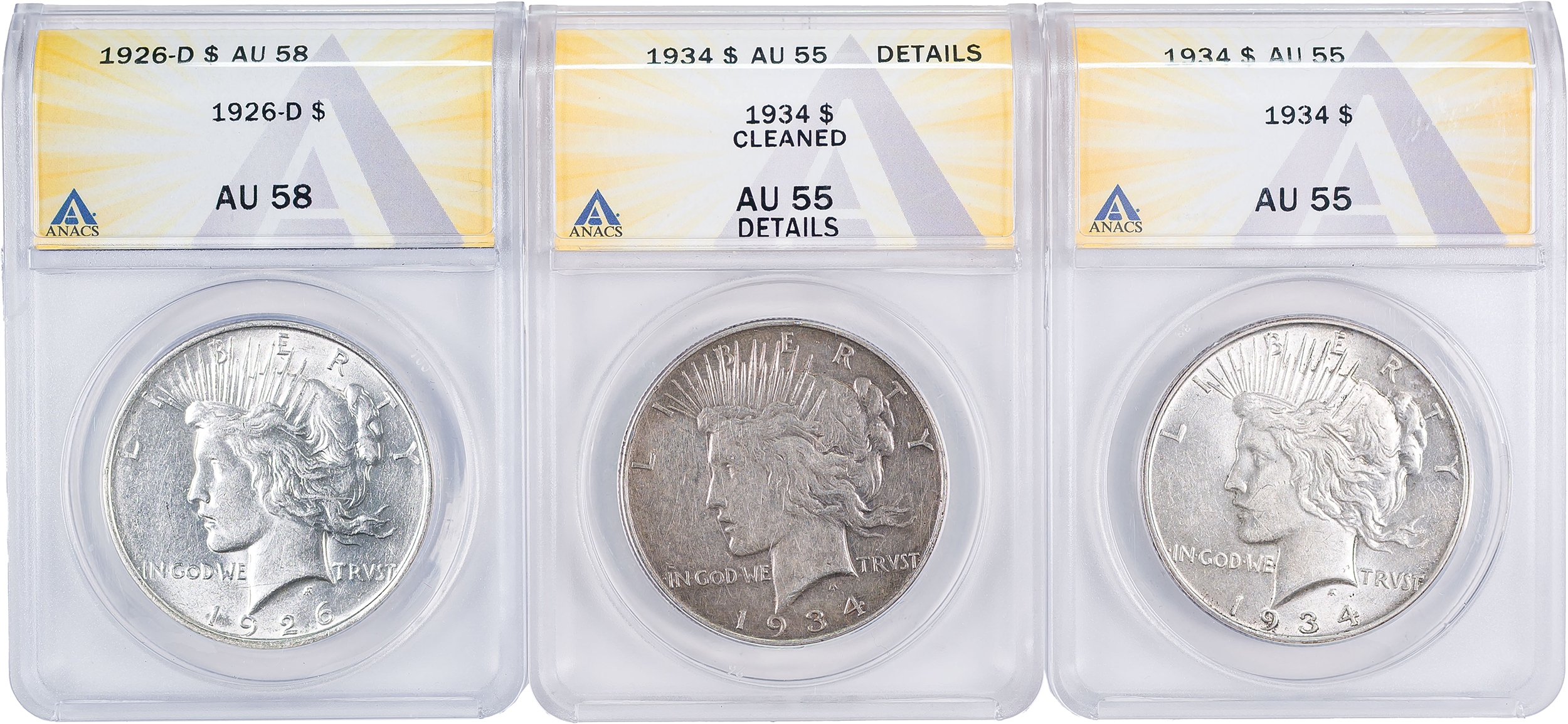 ANACS AU Peace Dollar Trio