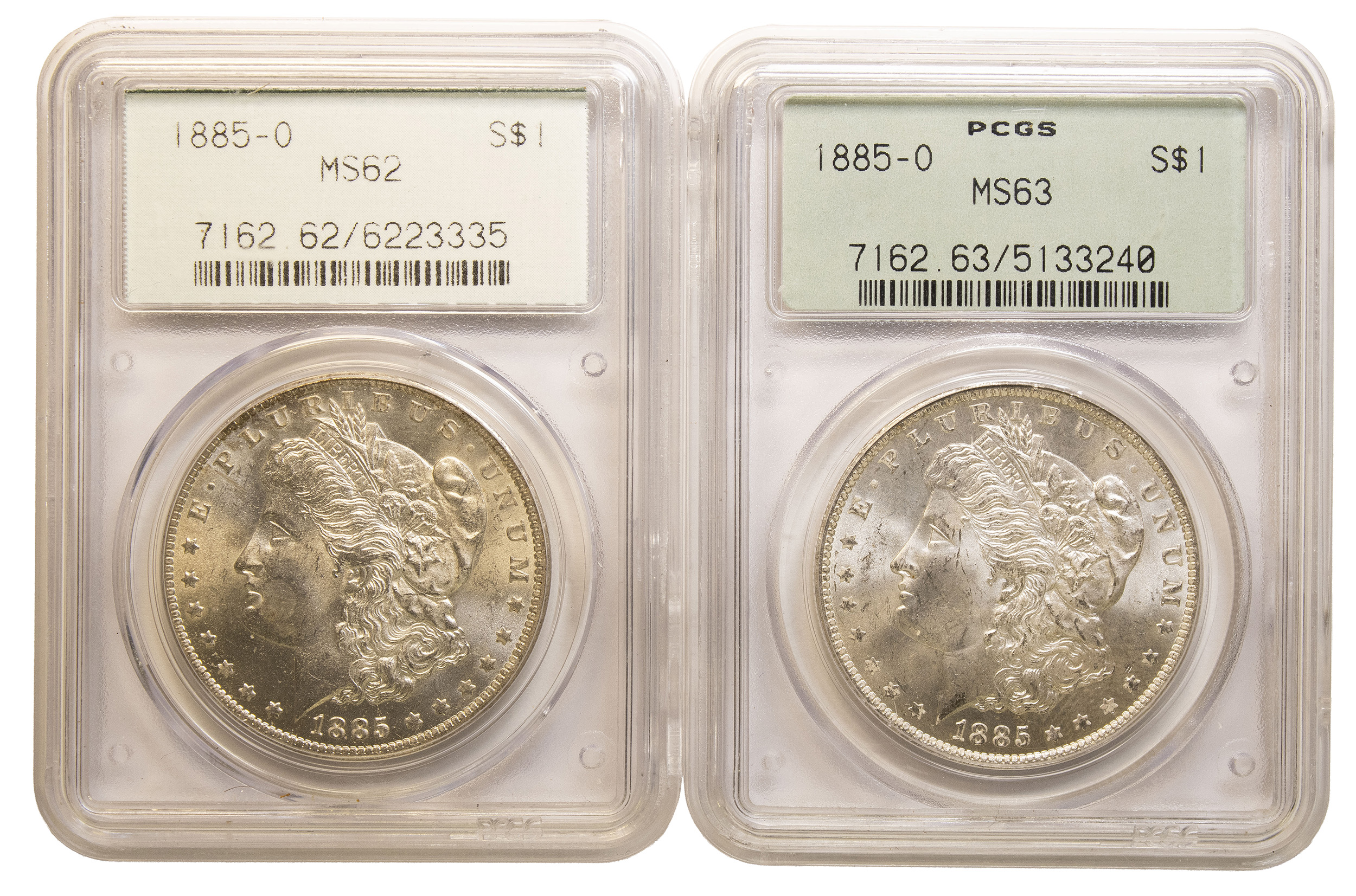 PCGS-Certified 1885-O Morgan Dollar Duo