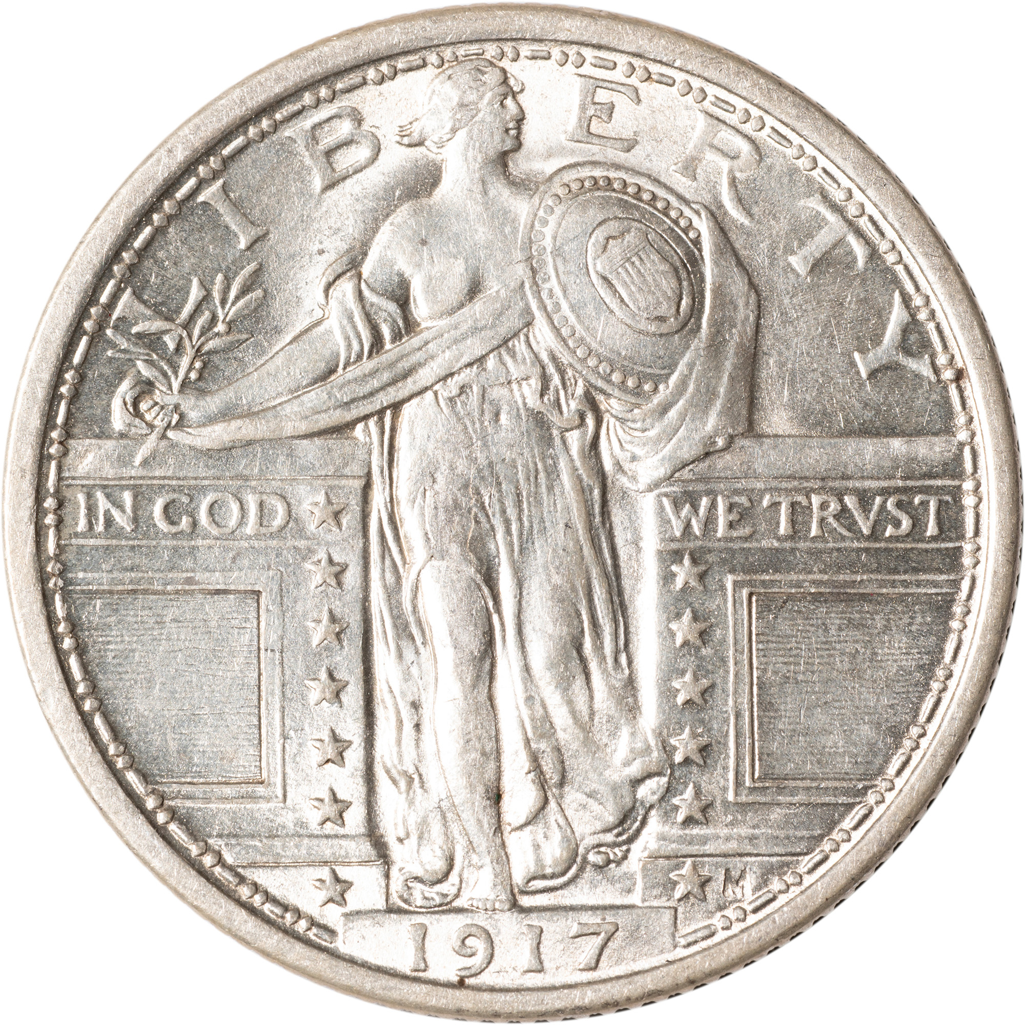 Choice AU-58+ 1917 Type I Standing Lib Quarter