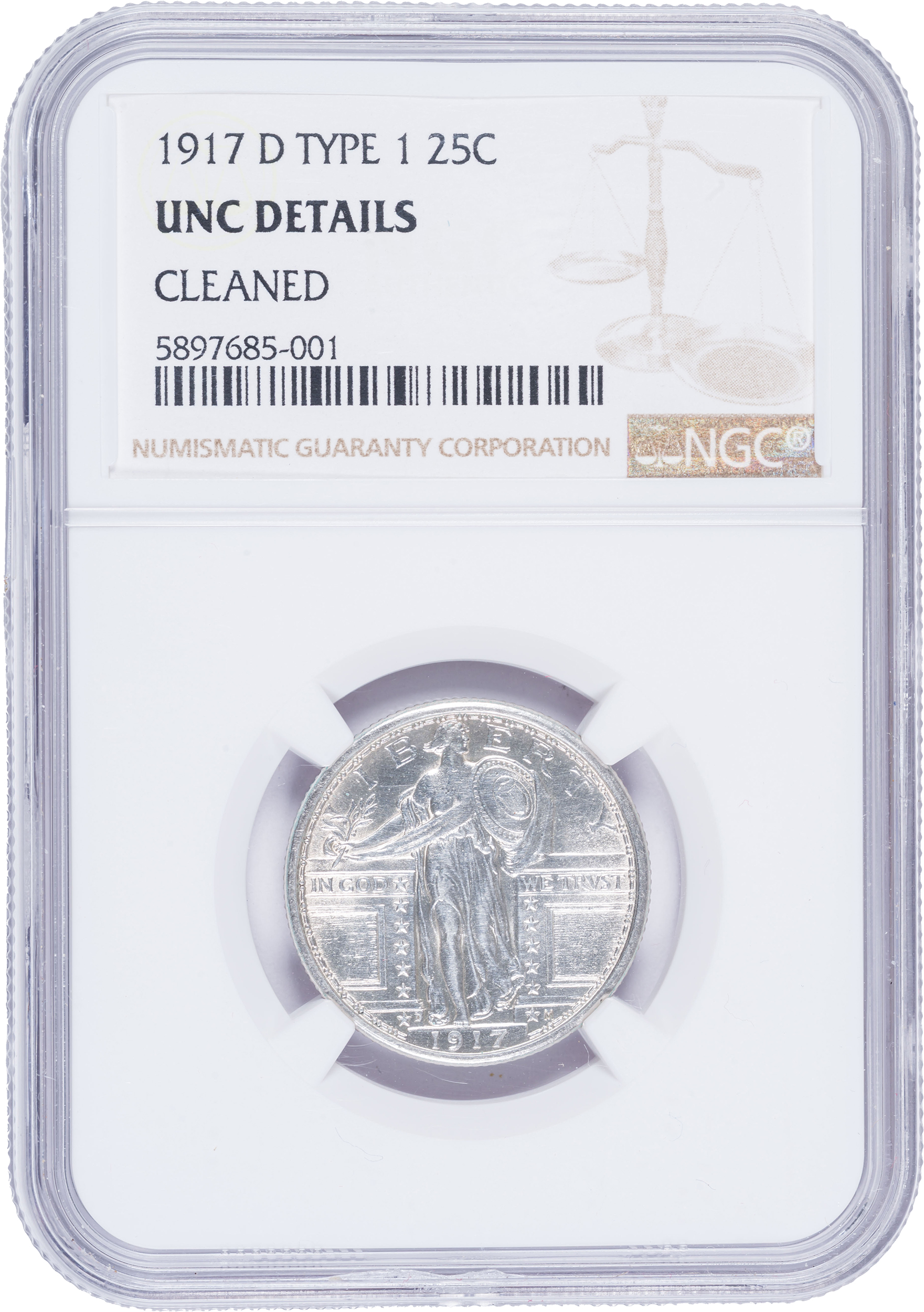 NGC UNC Details 1917-D Type I Standing Liberty