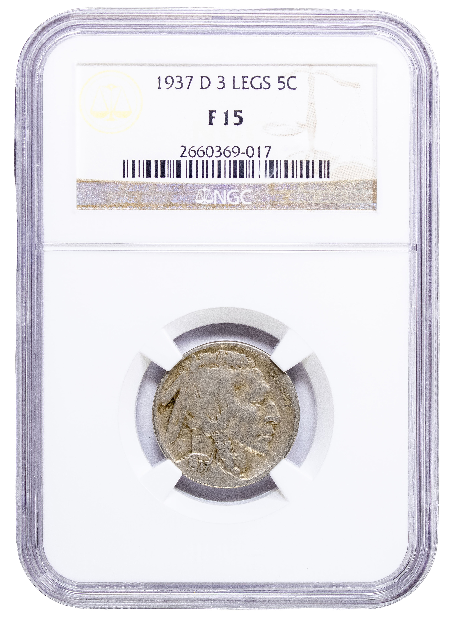 NGC Fine-15 1937-D Three-Legged Buffalo Nickel