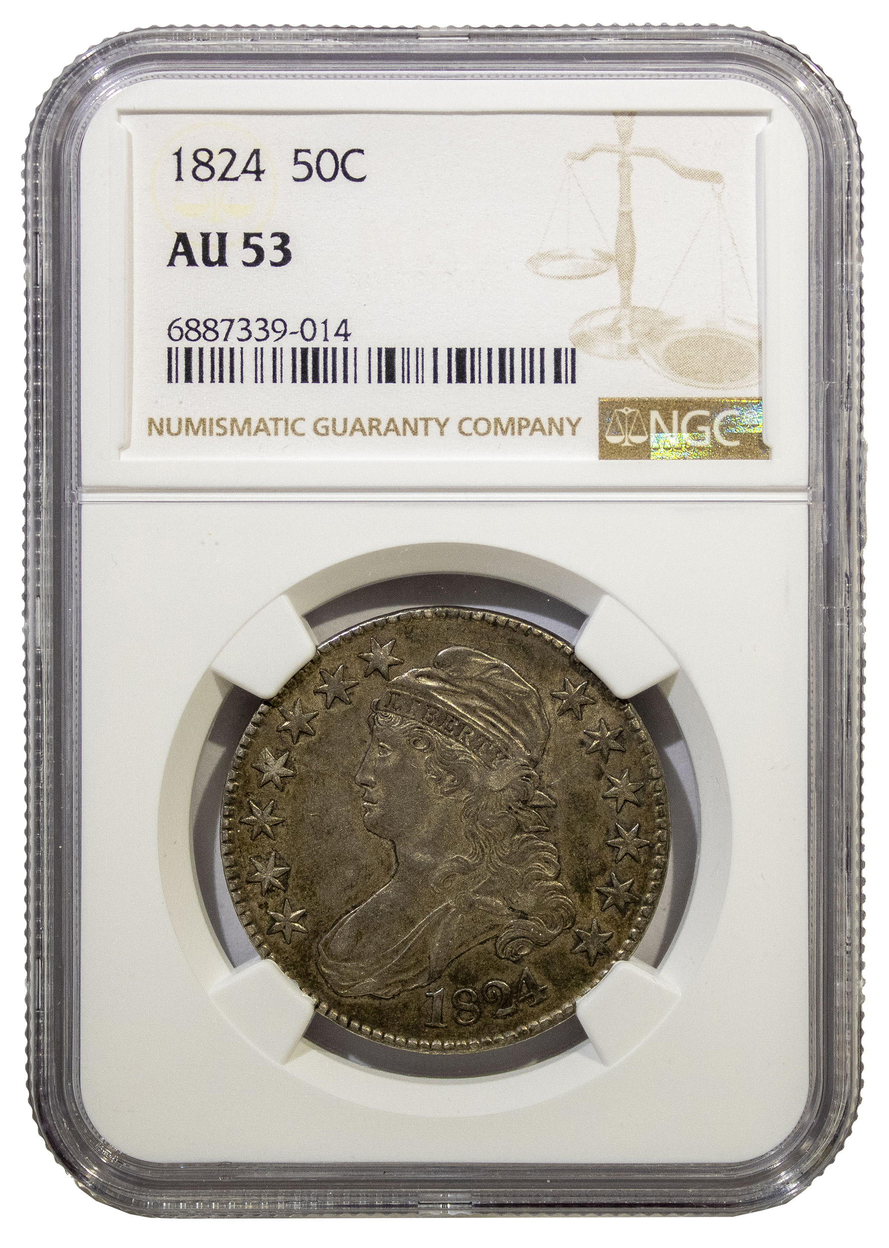 NGC AU-53 1824 Toned Half Dollar