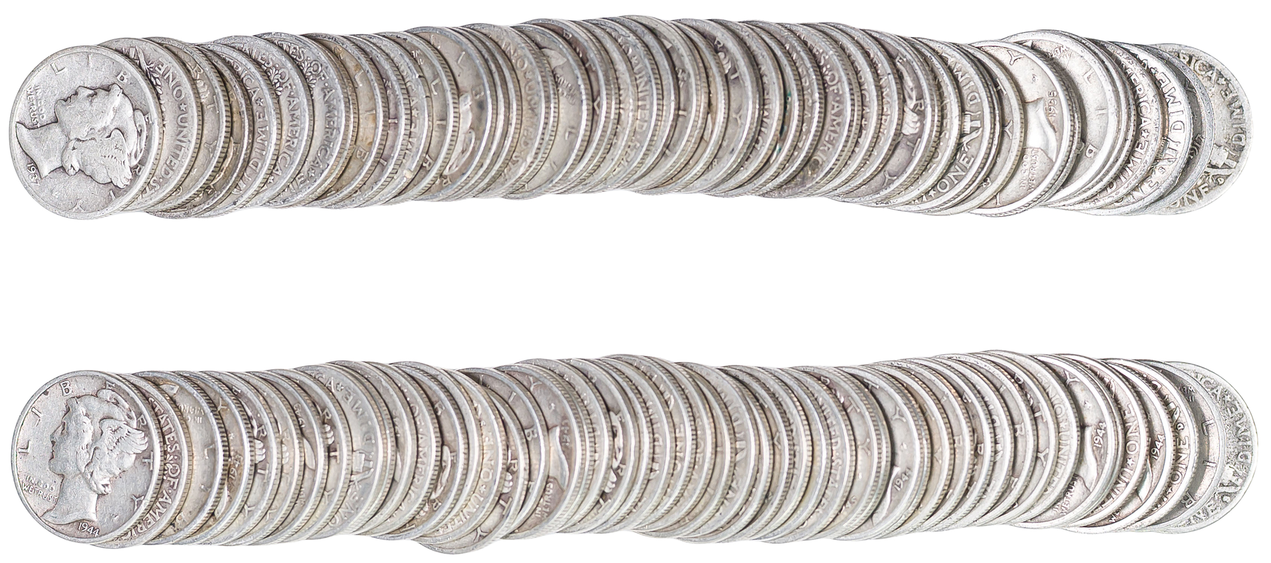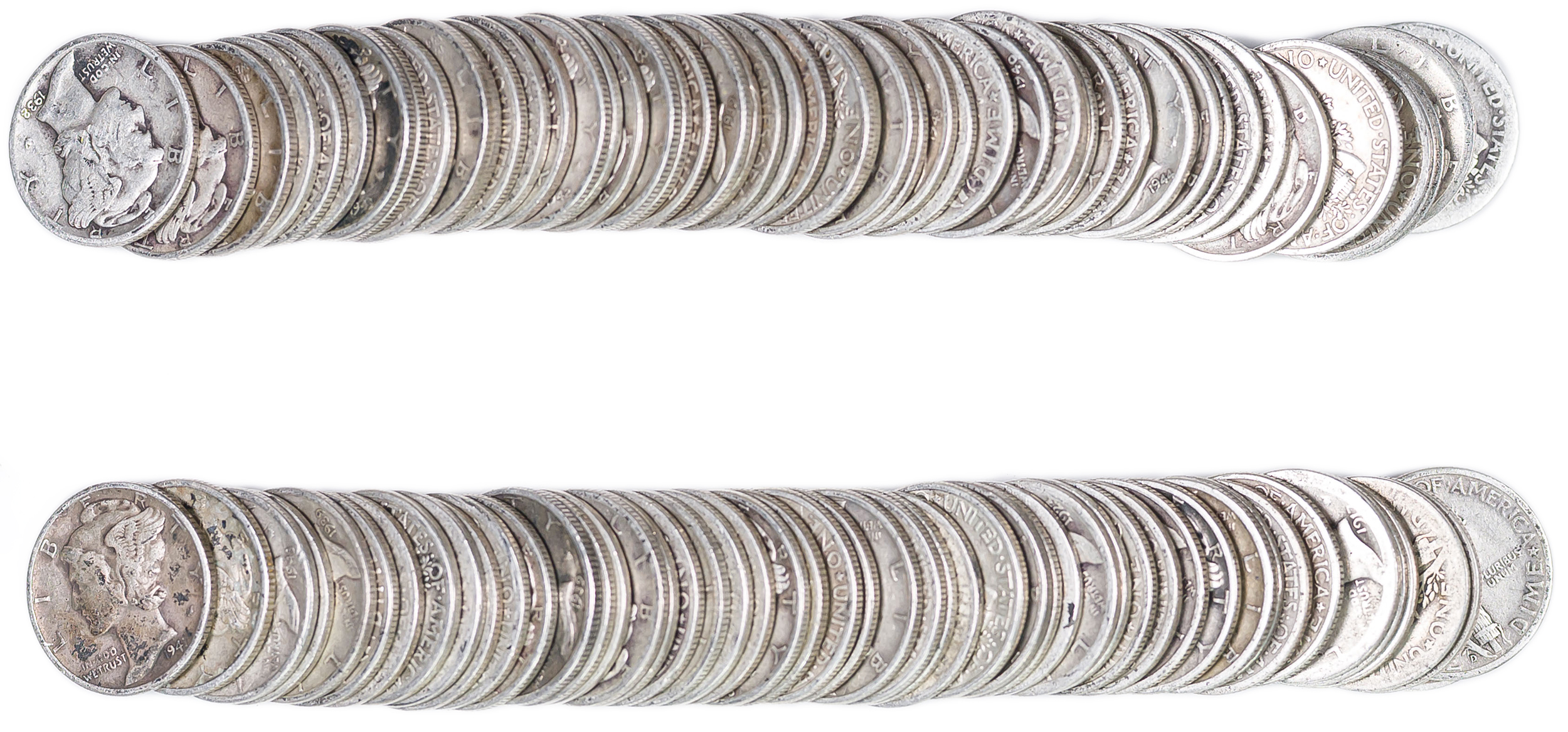 2 Rolls Of Mixed Circulated Mercury Dimes