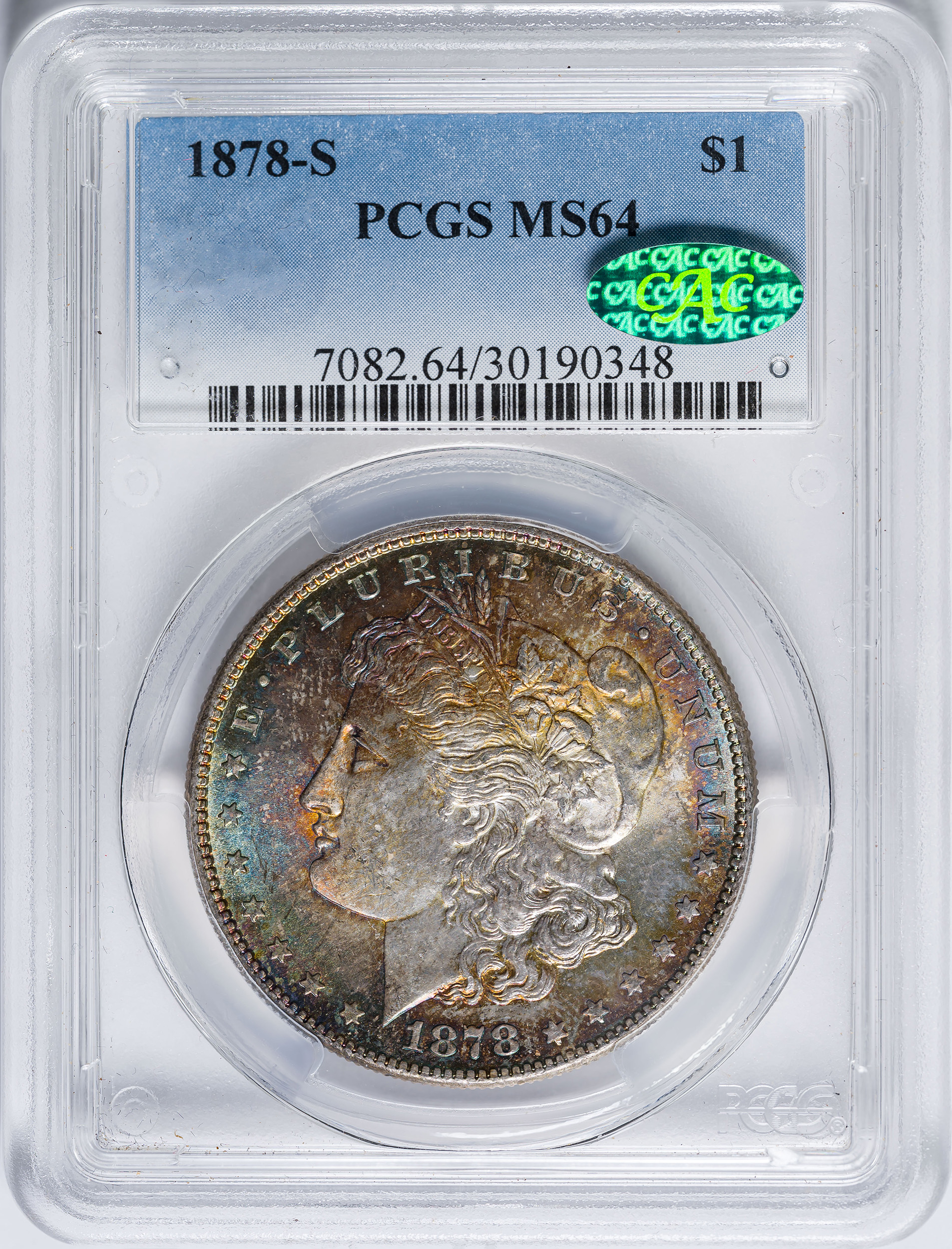 PCGS MS-64 CAC 1878-S Vividly Toned Morgan Dollar