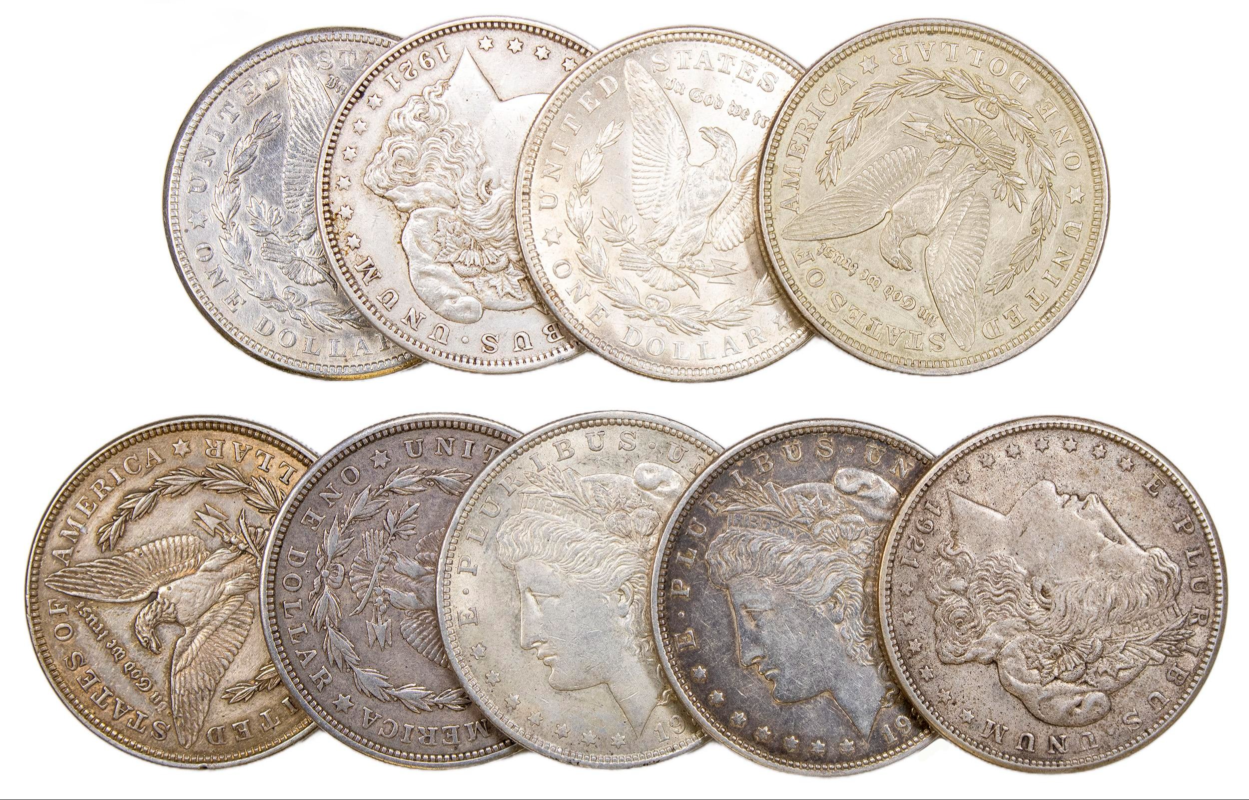 9 Pieces 1921 Morgan Dollars