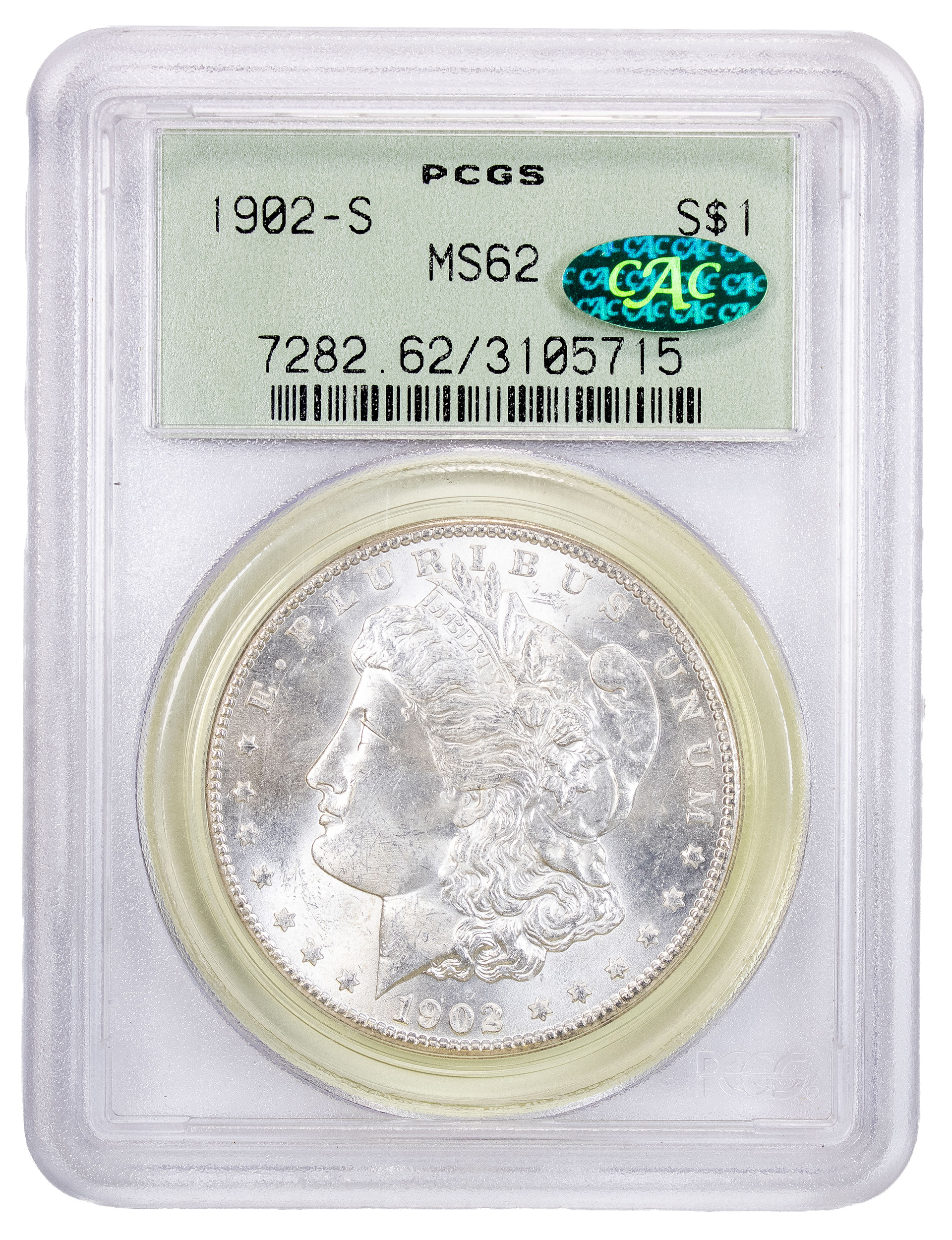 PCGS MS-62 CAC 1902-S Morgan Dollar