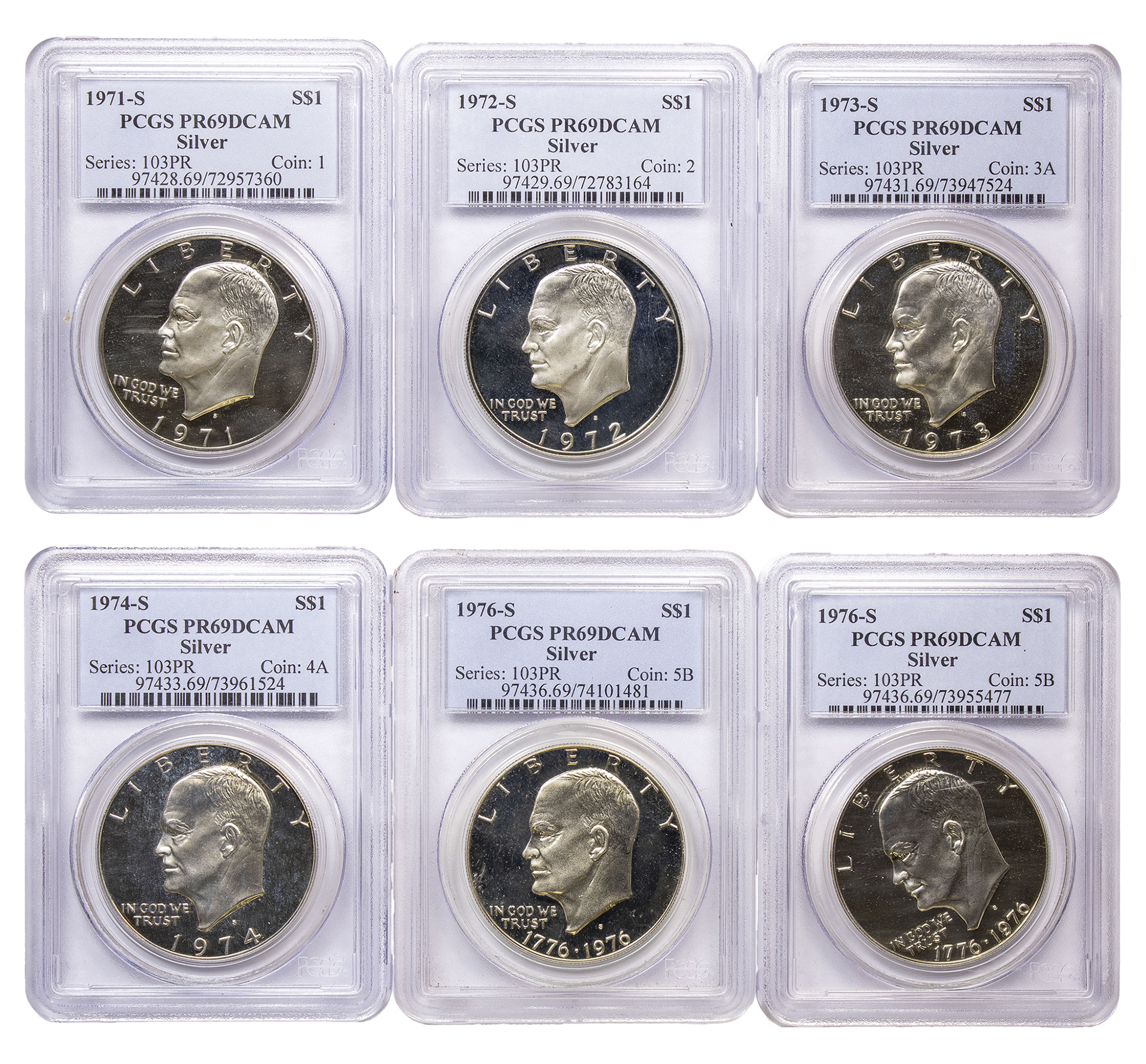 6 PCGS Proof-69 DCAM Silver Ike Dollars