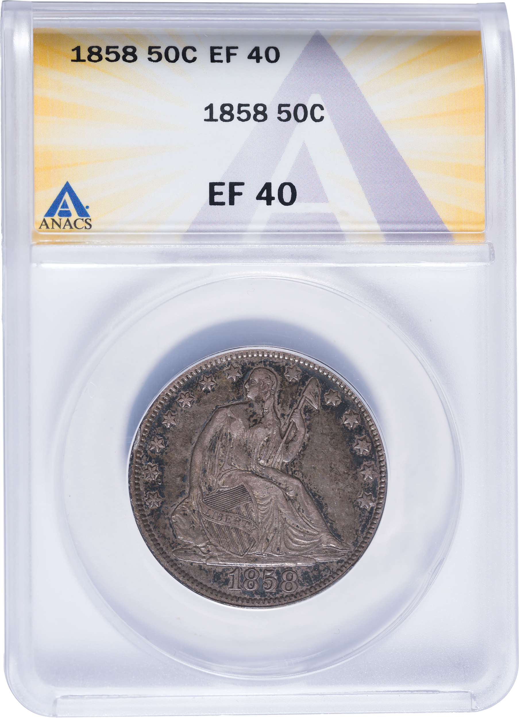 ANACS EF-40 1858 Seated Half Dollar