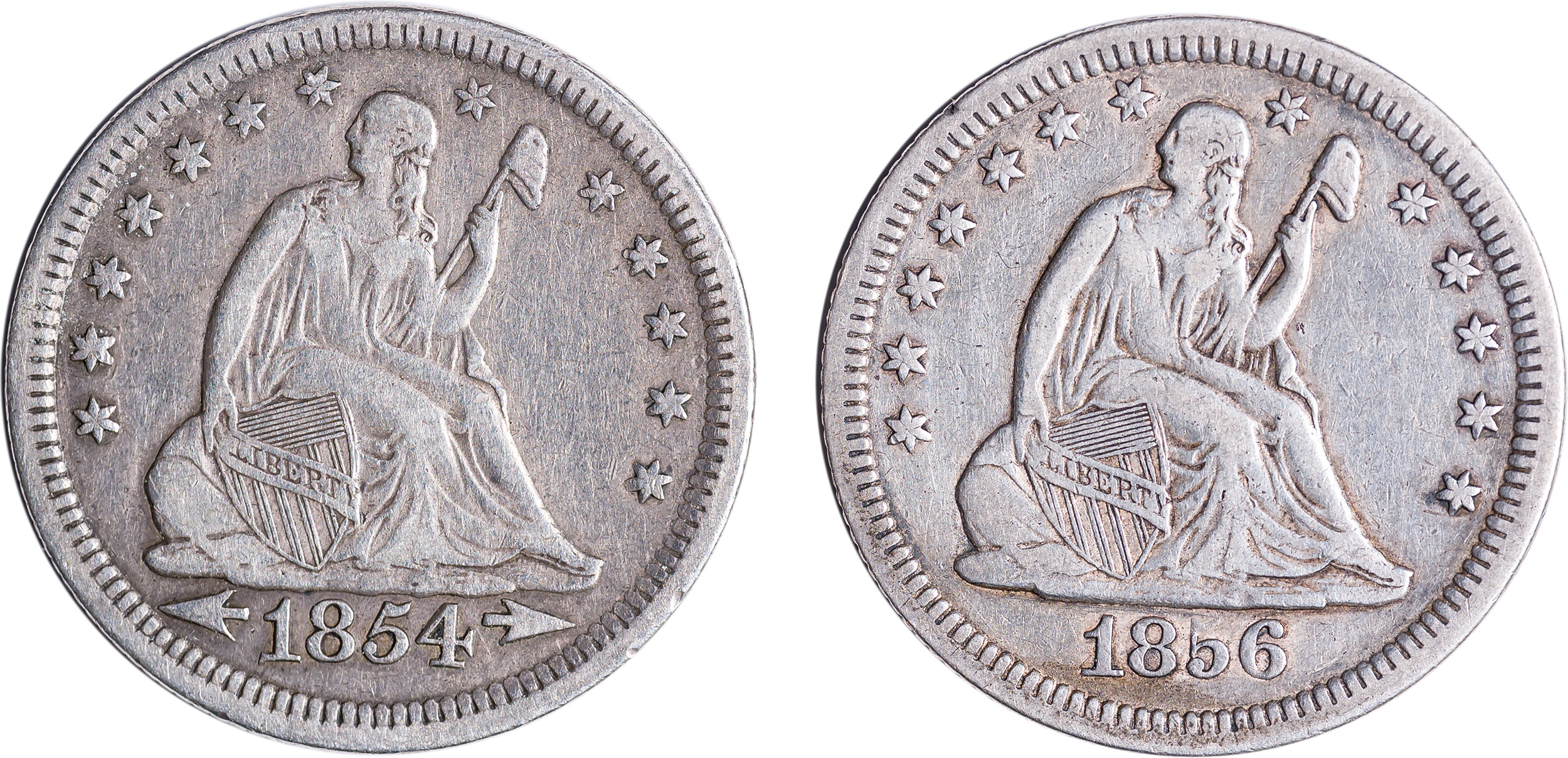 1850's Seated Quarter Pair