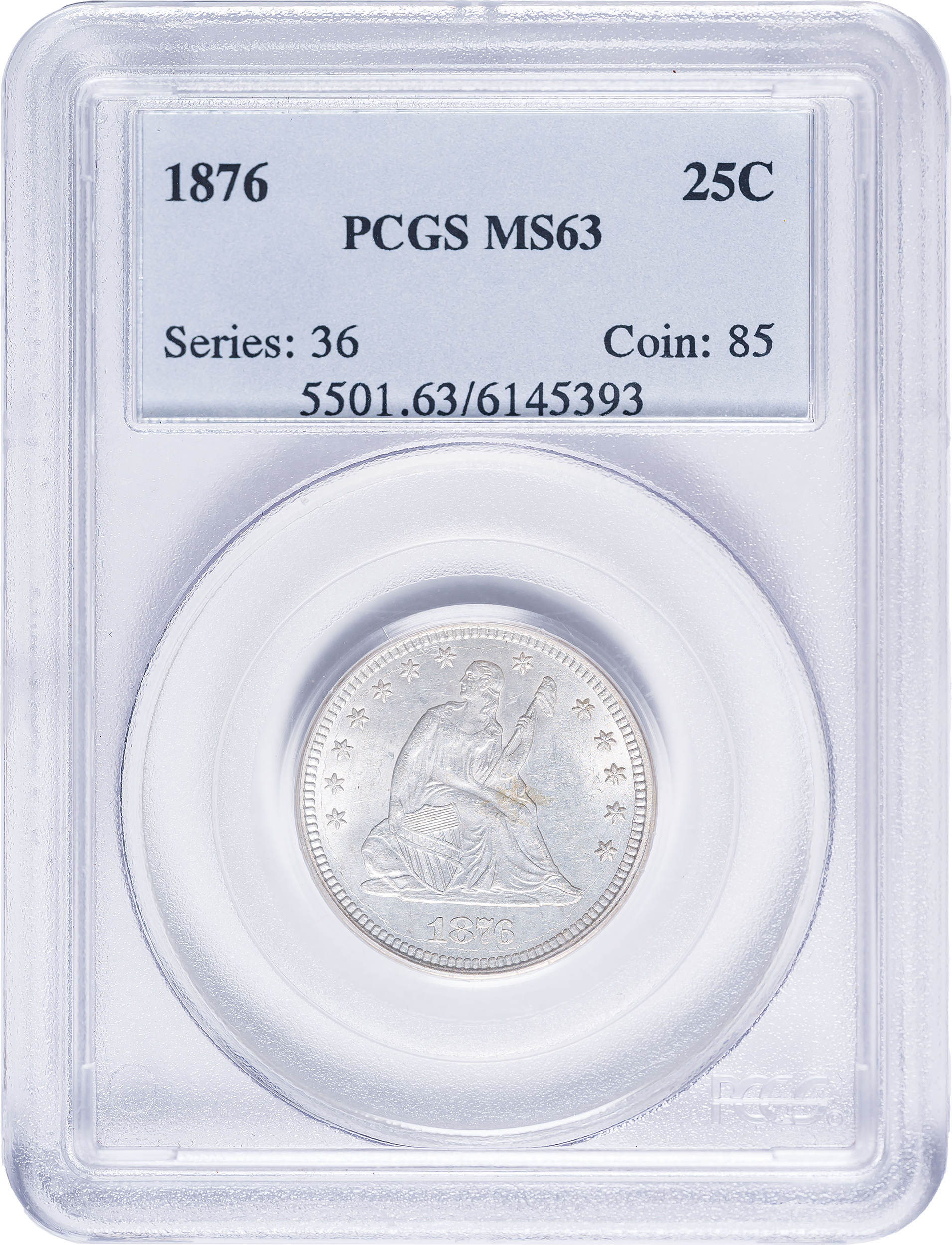 PCGS MS-63 1876 Seated Quarter