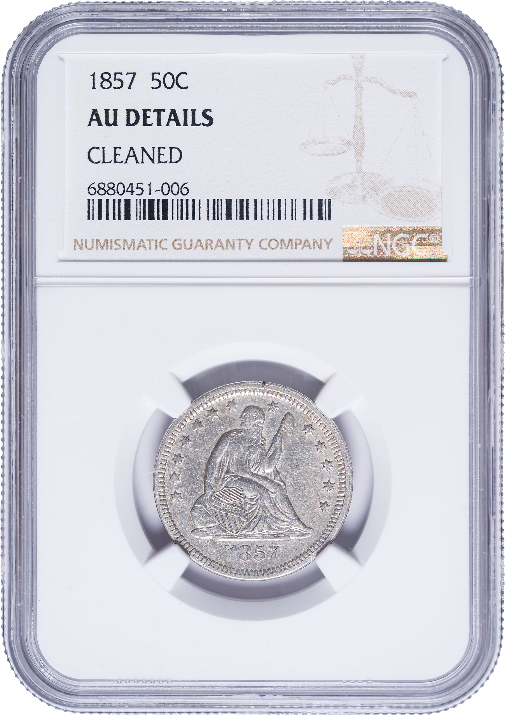 NGC AU Details 1857 Seated Quarter