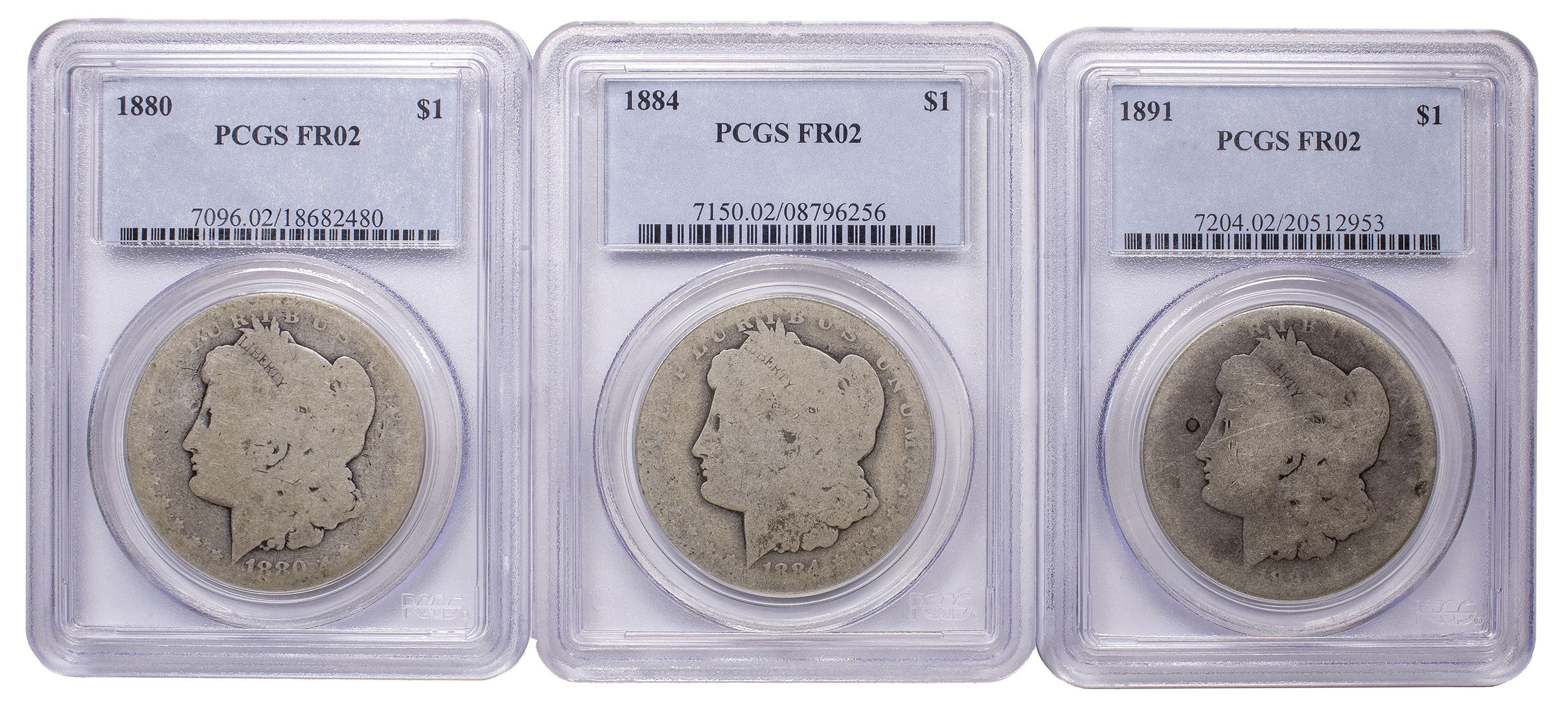 Another Lot Of 3 Fair-2 PCGS Morgan Dollars