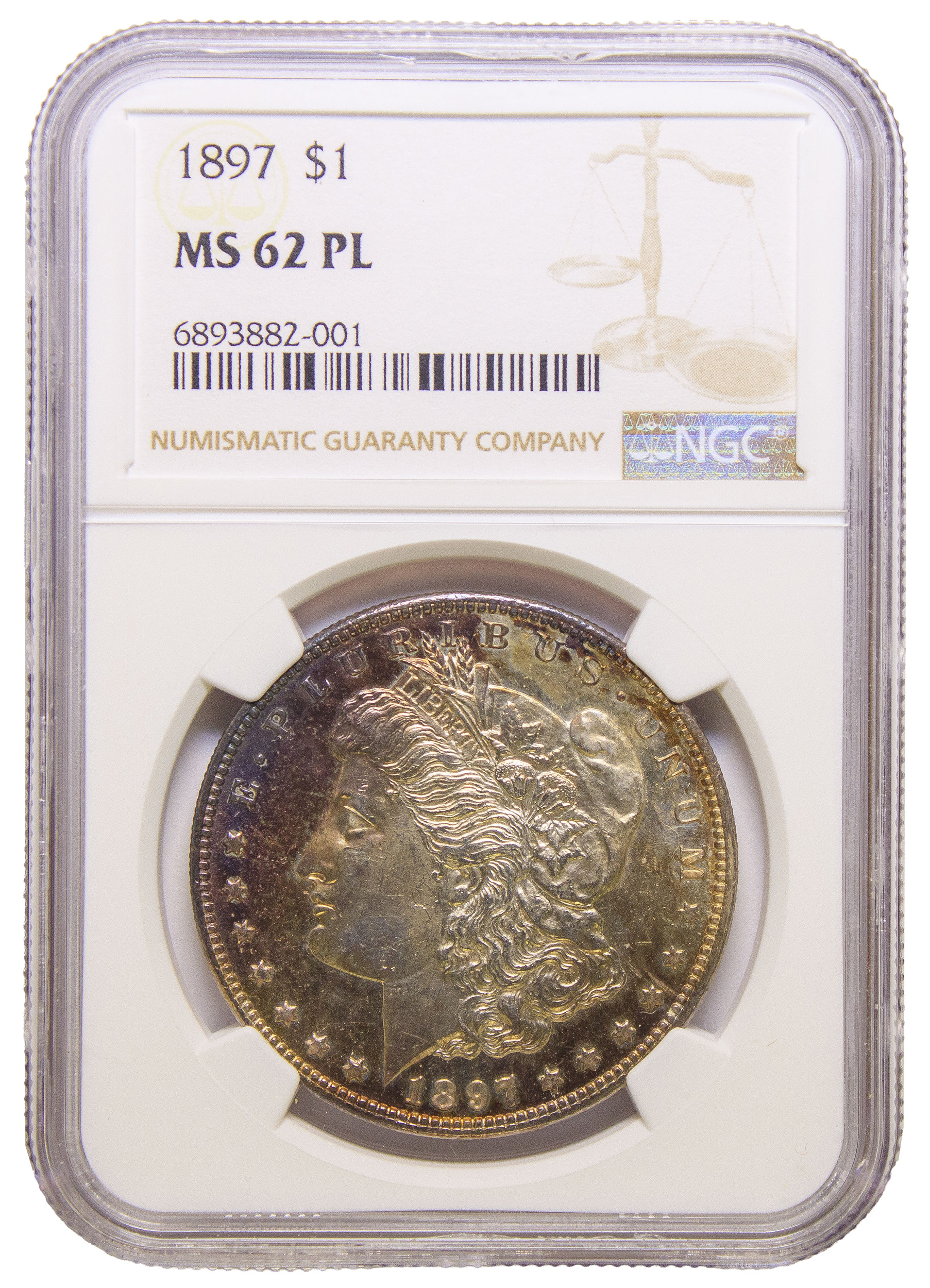 NGC MS-62 PL Toned 1897 Morgan Dollar