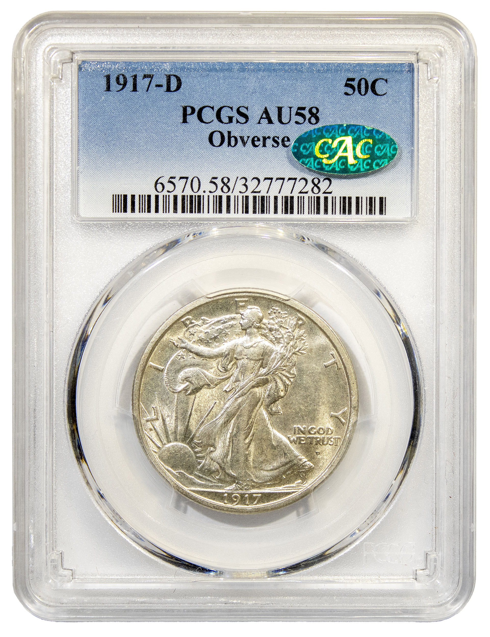 PCGS CAC AU-58 1917-D Obverse Half Dollar
