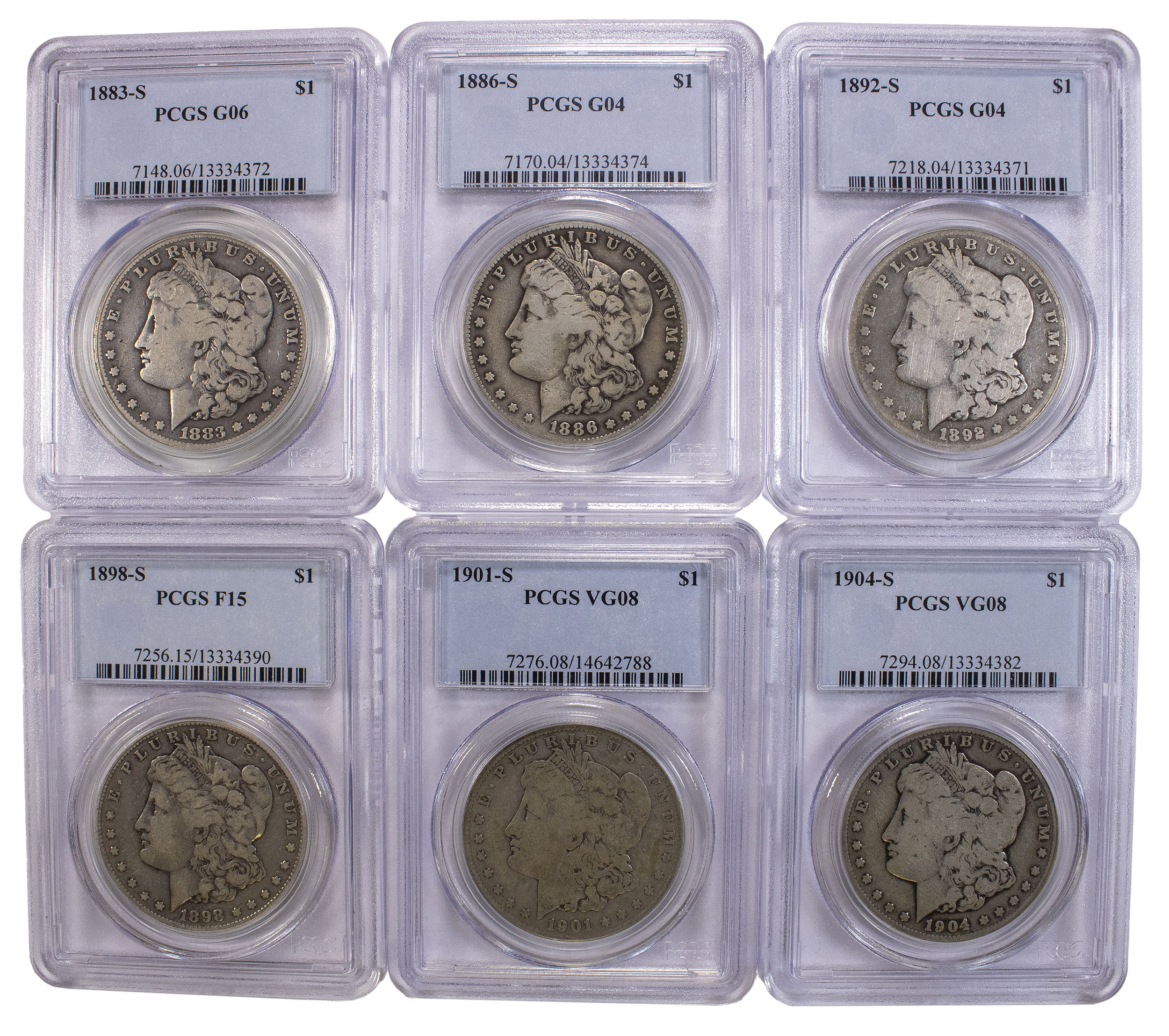 6 PCGS "S" Mint Morgan Dollars