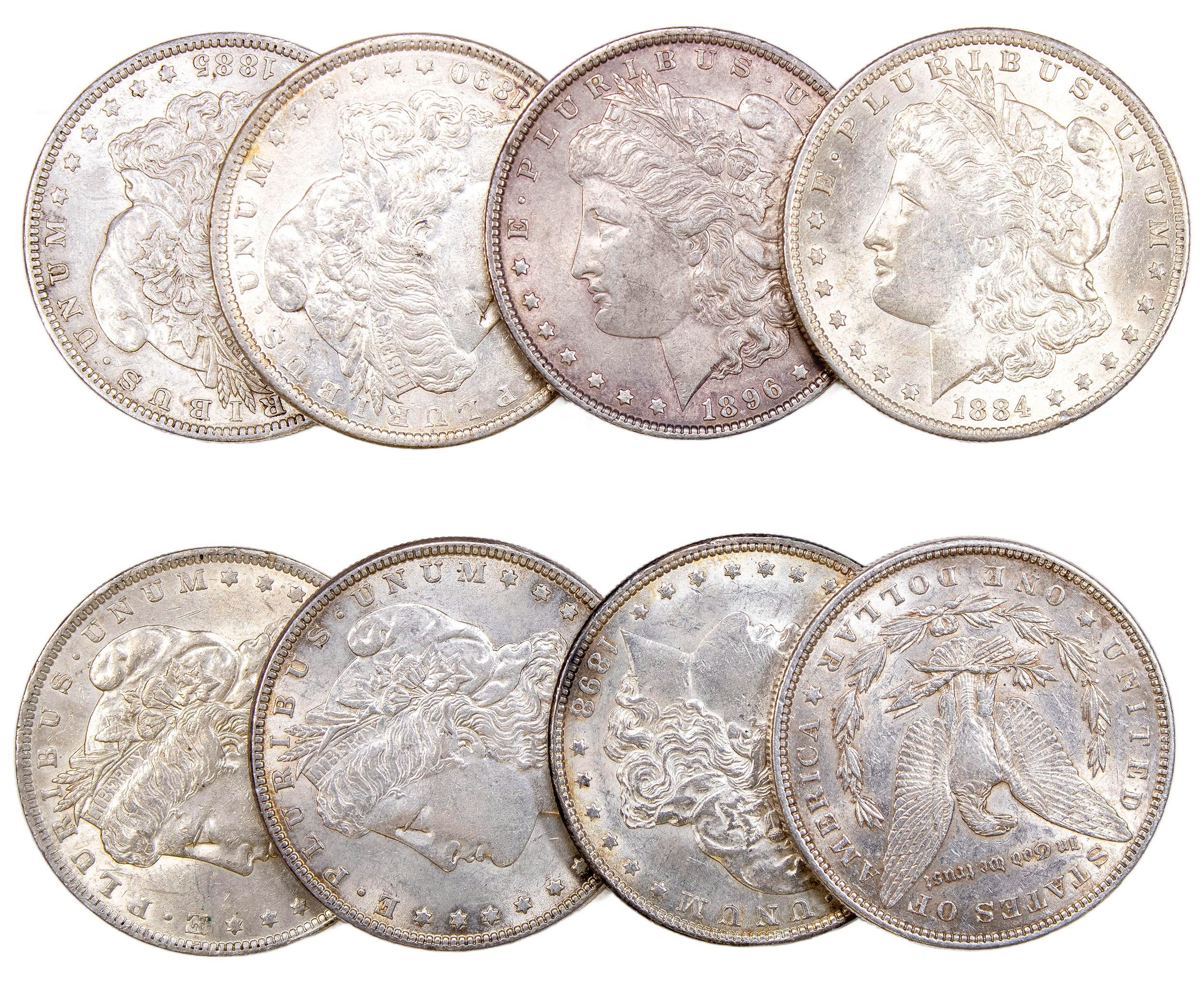 8 AU Pre-21 Morgan Dollars